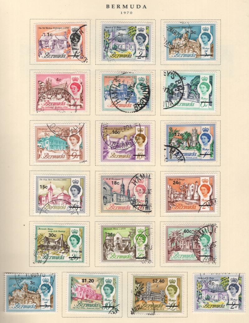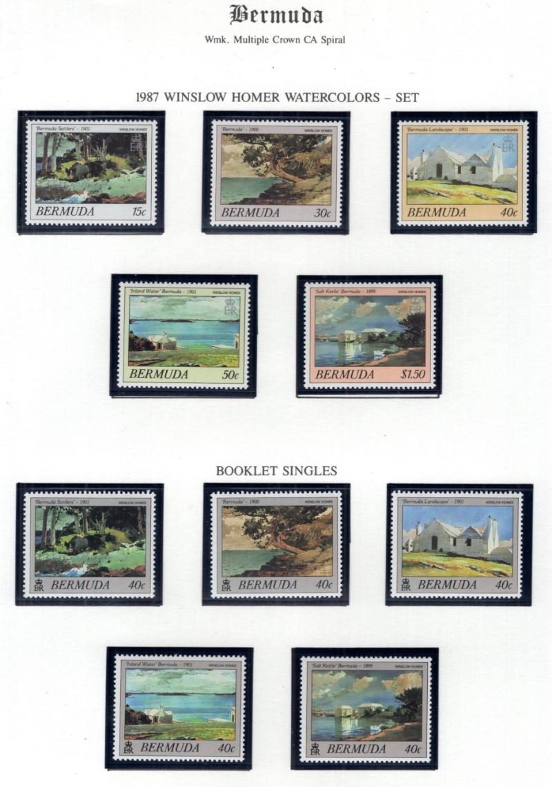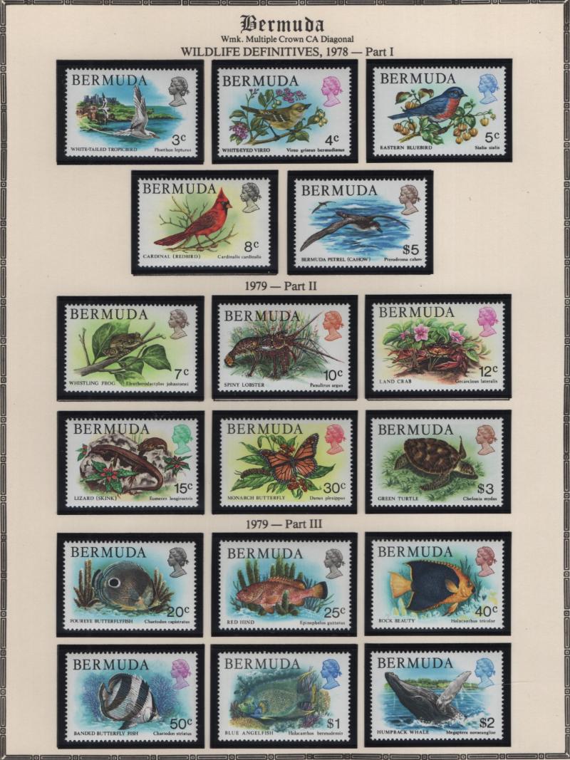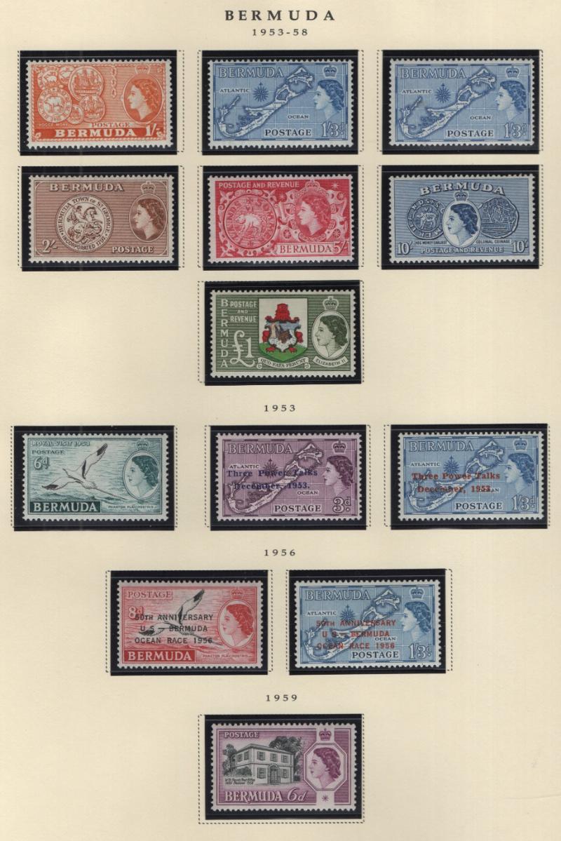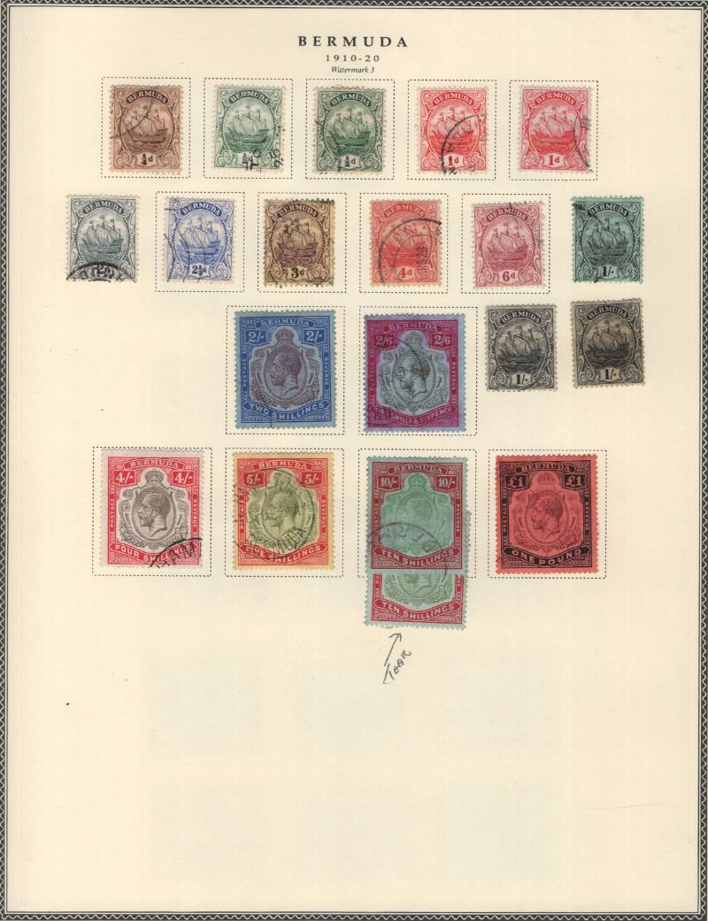 Collection (100s) all used in Scott Specialty Bermuda albums w/ pgs 1865-2004 w/ sgls, cplt sets, S/S, owner IDed incl Used: #1-6, 7-9, 16, 17, 18-25, 28-39, 40-54 revenue cancel on #54, 55-69, 71-79, 81-96 w/ revenue cancels on #95-97, 100-03,