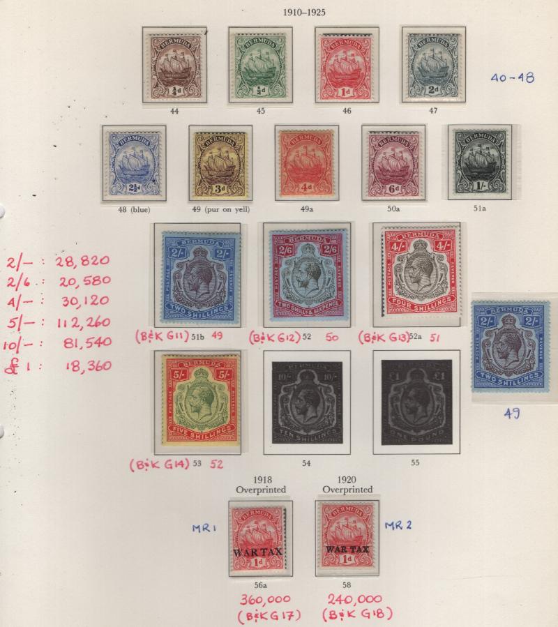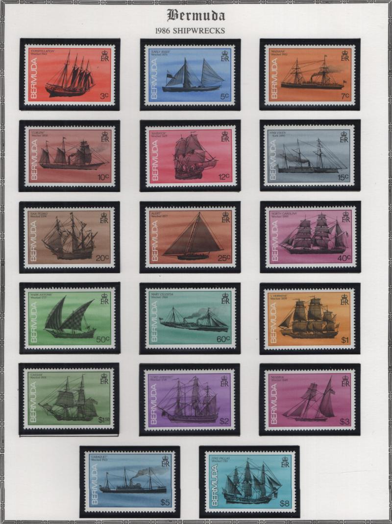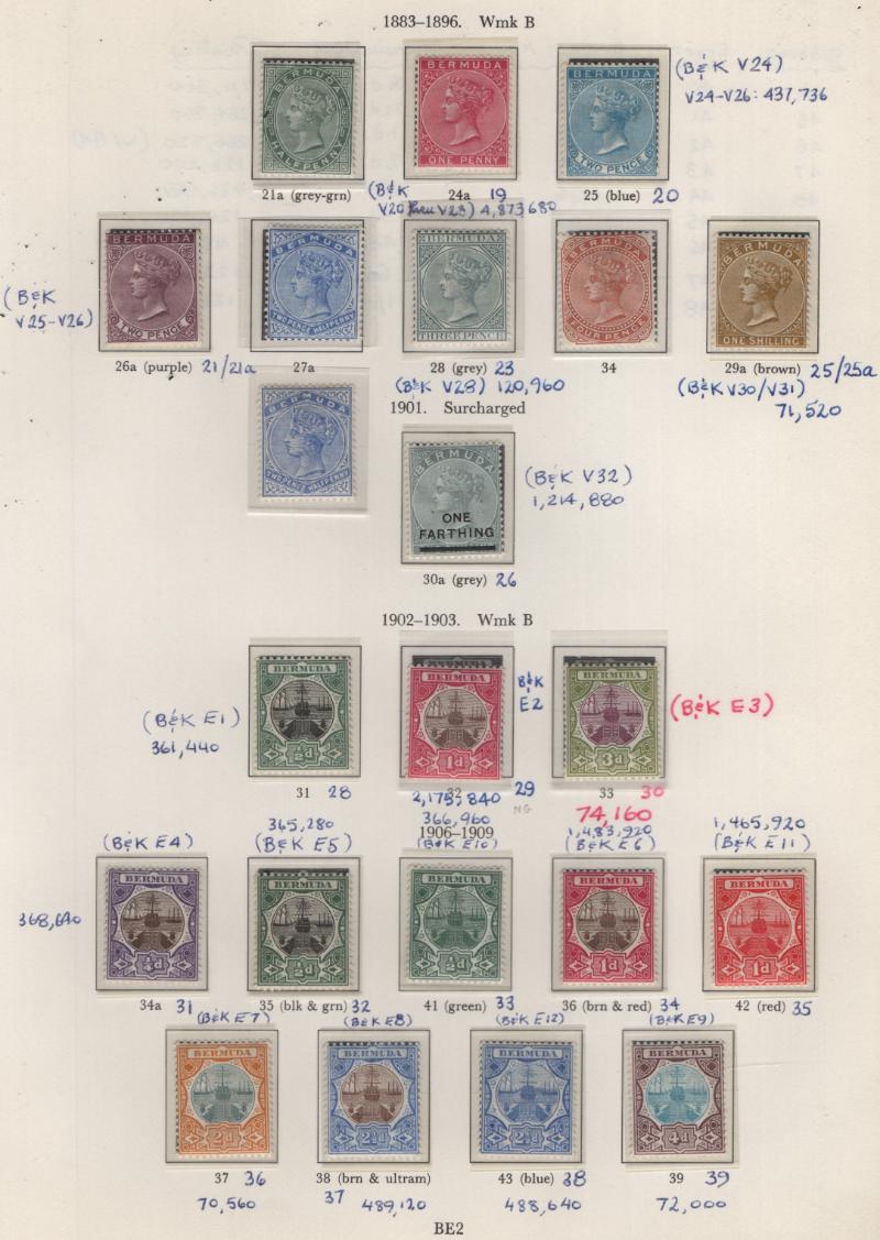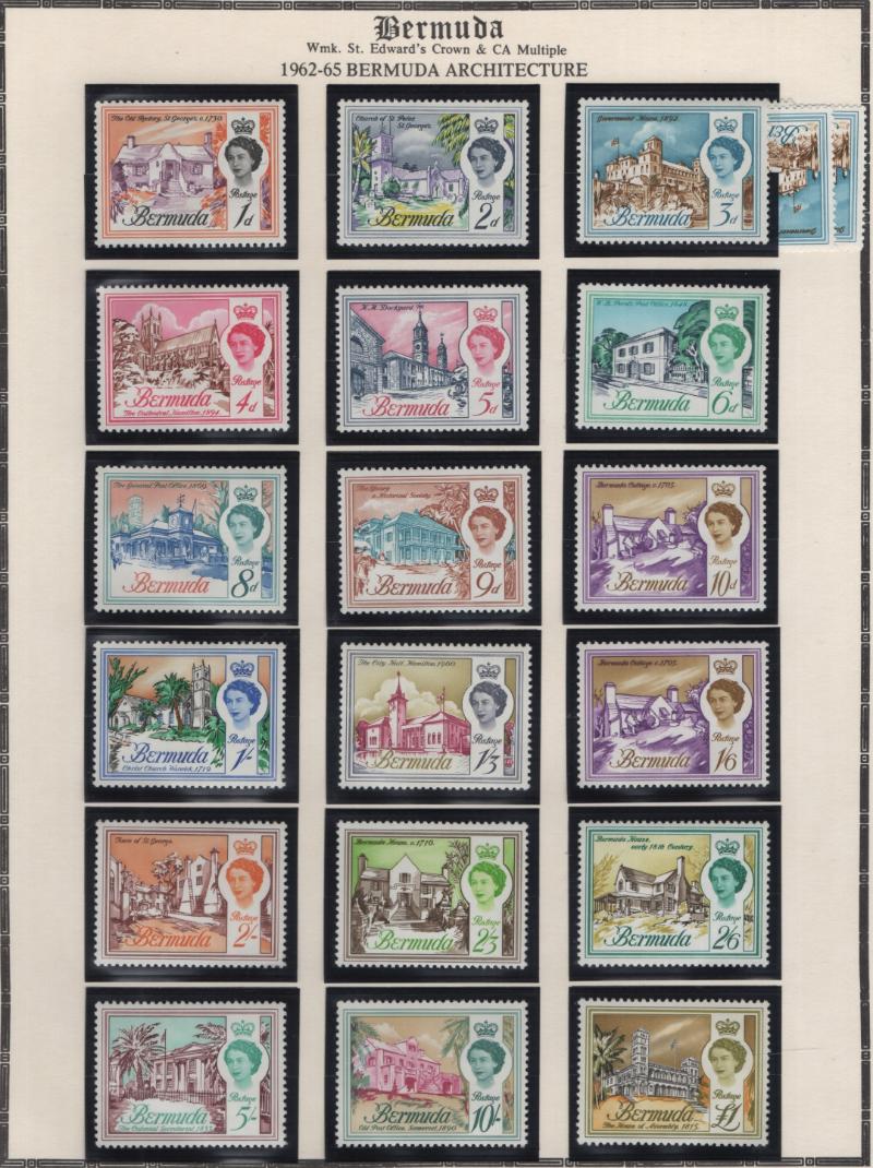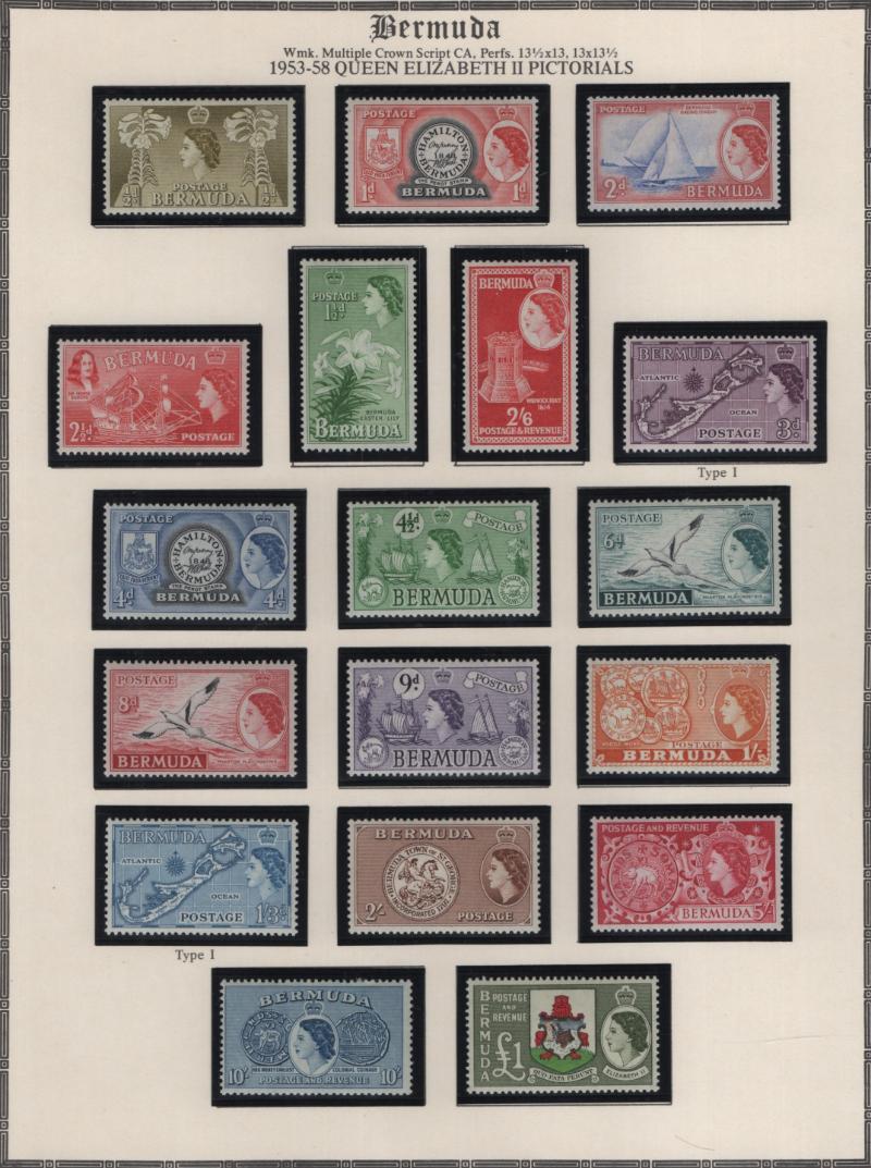 Collection (100s) all used in Scott Specialty Bermuda albums w/ pgs 1865-2004 w/ sgls, cplt sets, S/S, owner IDed incl Used: #1-6, 7-9, 16, 17, 18-25, 28-39, 40-54 revenue cancel on #54, 55-69, 71-79, 81-96 w/ revenue cancels on #95-97, 100-03,