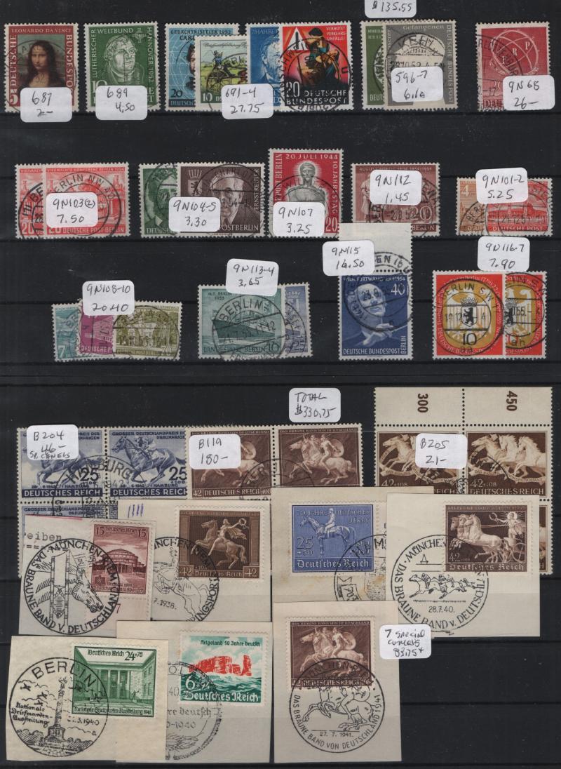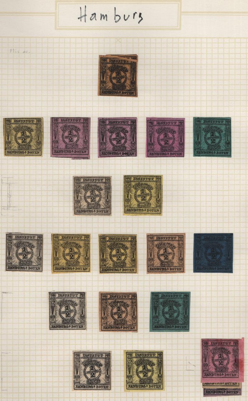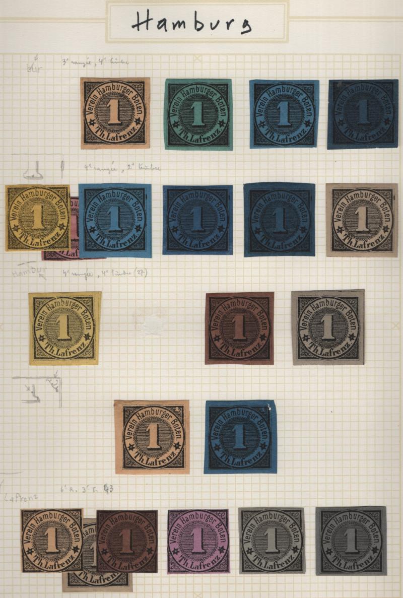 delivered cancels from Berlin, Hamburg or Bremen; each w/ matching owner's mark; as these are tied to coupon, none checked for watermark variety, which can add a large premium for some values; gen VF (Image)