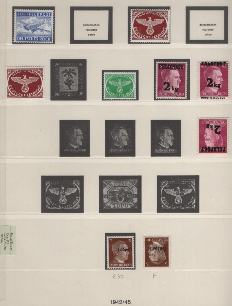 Selection Feldpost Stamps on Lindner T pgs; incl Michel (NH unless noted) #1A, 2A (2), 4, 10Bb signed, hinged, 17 signed; extras incl #2B LL Blk w/ HAN #18895, #2B LR Blk/10 w/ inscription in selvage, #4 w/ shifted Ovpt hinged, fakes #4, 17; gen VF