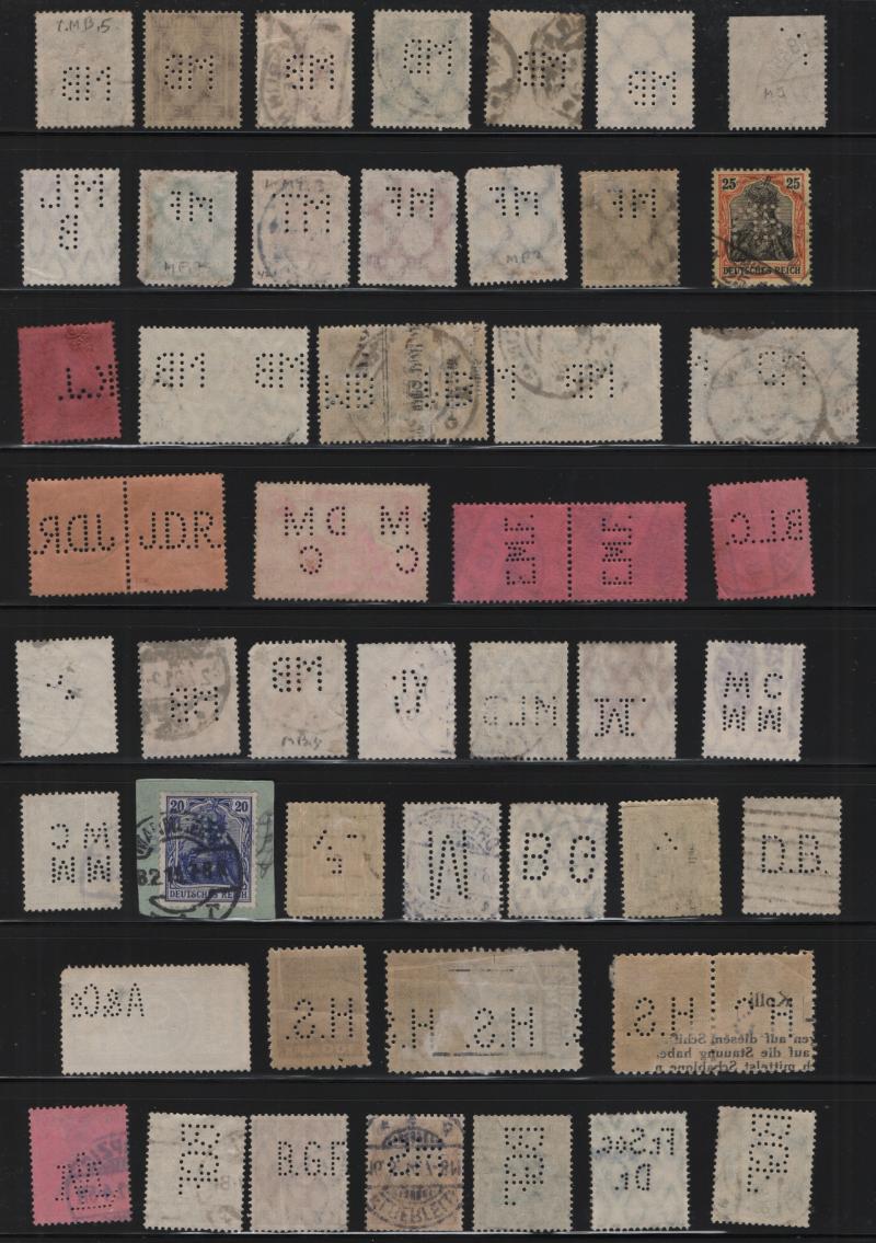Collection PERFINS on 1910s-30s issues, over (4700) filling (48) double-sided 8-row black Vario pgs, stamps all show backs so perfin easily visible; noted many Germanias & Inflations, gen F-VF (Proceeds benefit APS) (Image) (imageb)