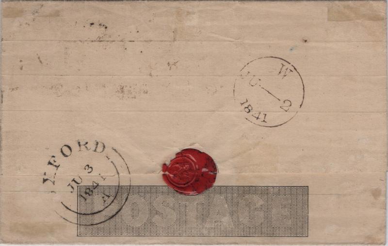 F-VF Mulready 1d black letter sheet, black Maltese cross cancel, red wax seal, June 3rd 1841 cancel on reverse, contents regarding selling of stamps, hinge remnants on reverse (Proceeds benefit APS) (Image) (imageb)
