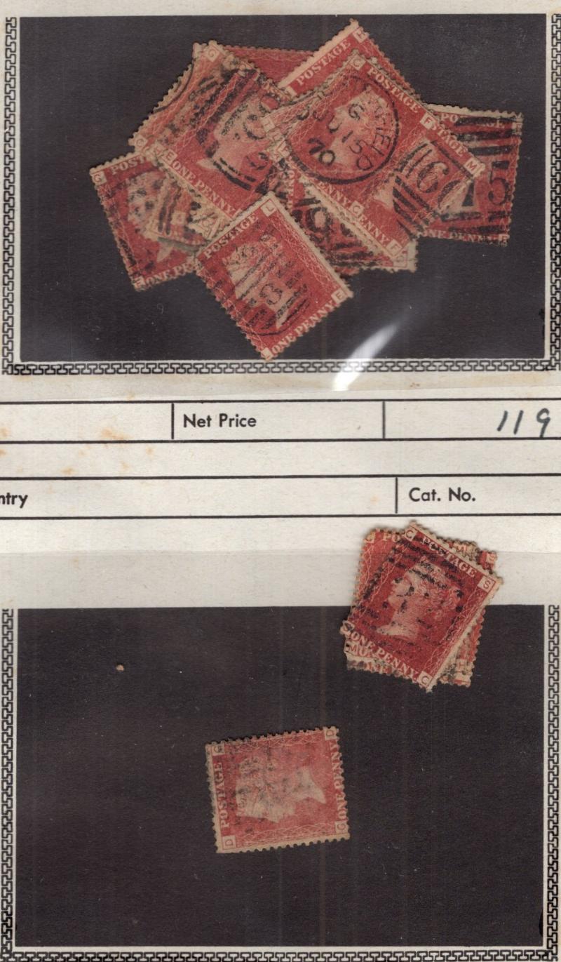 Stock Used Penny Reds #33 (100s) arranged by plate # in a dealers counterbook all in varying qty from plate #71 to plate #220, mixed cond flts to F (Image) (imageb)