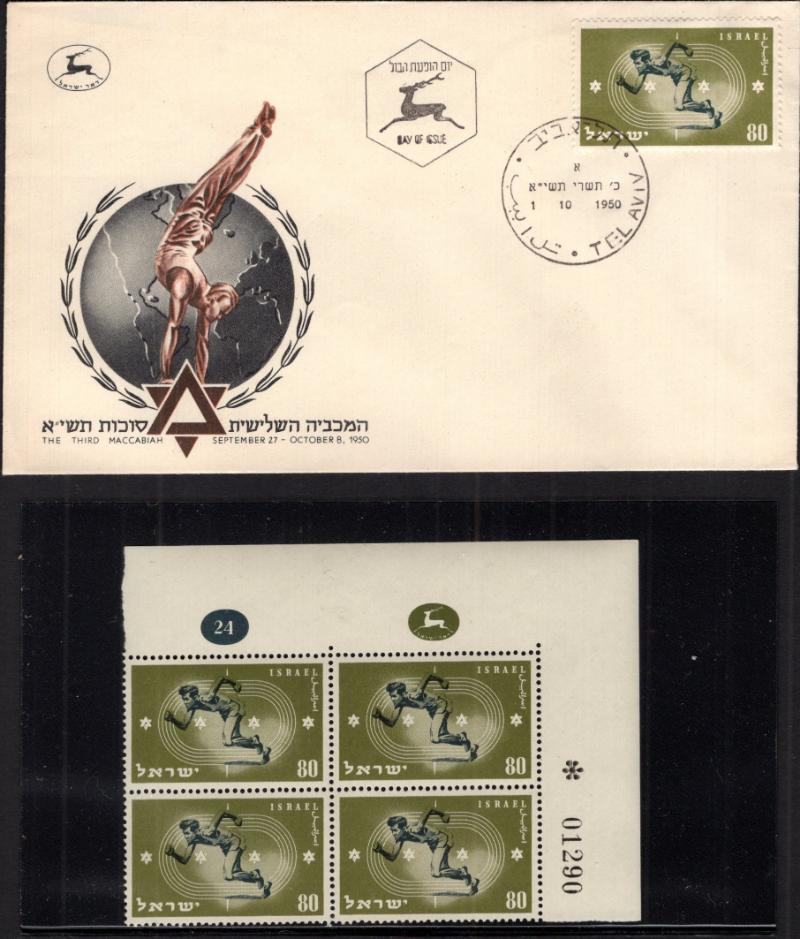 FDC & event, info & Blks of Israel Sport Stamps, nice clean group, F-VF H/NH (Image) (imageb)