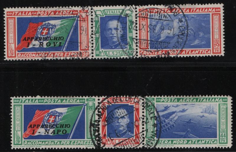 C48-C49 F-VF+ The famous & popular airmail triptychs, likely CTO cancels so CV is for unused per note in Scott; C48 ROVI and C49 NAPO (Image)