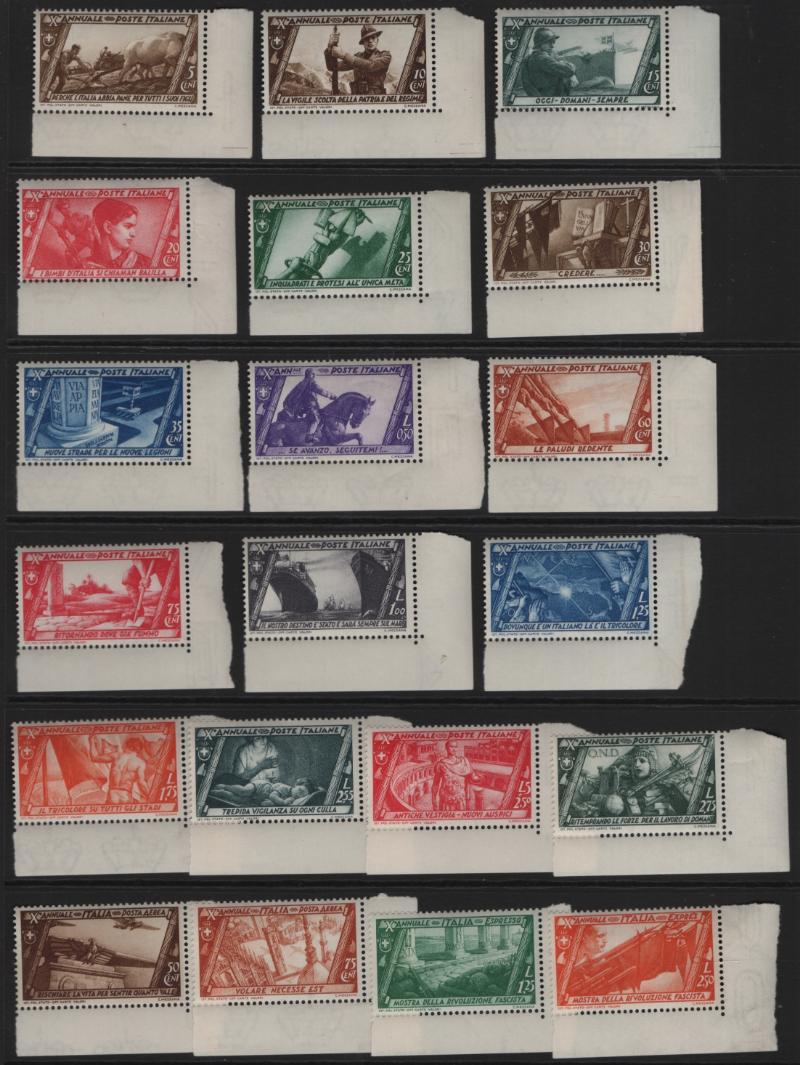Dante regular issue #268-79; 10th Anniv full set #290-305, C40-41 & E16-17, (3) lower values 268-270 w/ small amt of toning, attractive sets, VF+ NH (Image) (imageb)