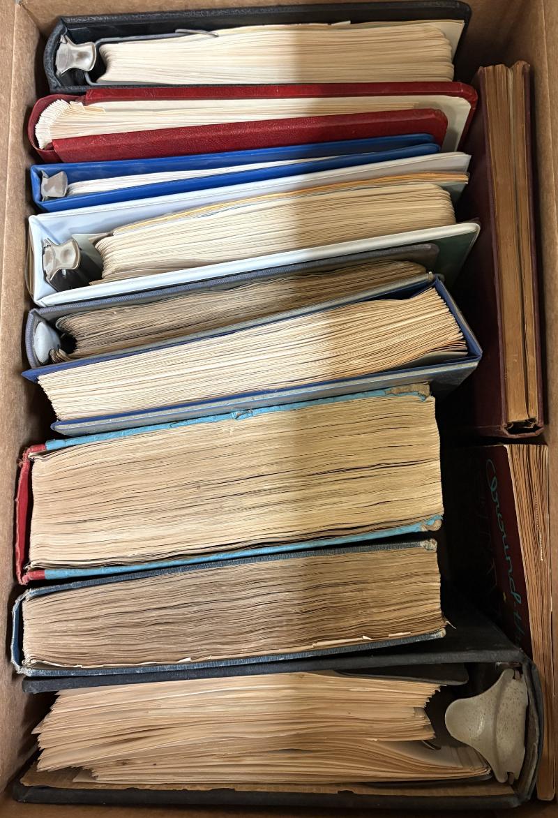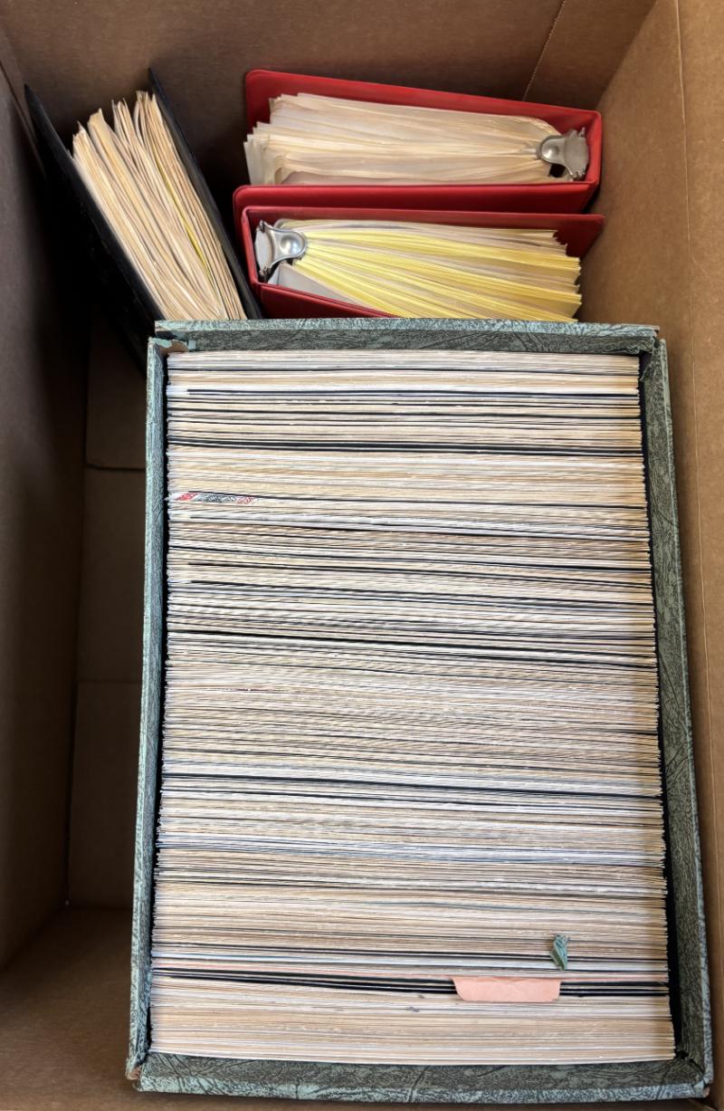 1522 image Dealer Stock in (2) large file boxes & (3) dealer counter books w/ (1000s) */O sgls, few cplt sets incl Austria, Belgium, Bolivia, Brazil, Brit Colonies, Cuba, Germany, Guiana, Haiti, Korea, Mexico, Monaco, Mongolia, Qatar, Spain & Colonies, Switz & many others, few flts but mainly F-VF (Image)