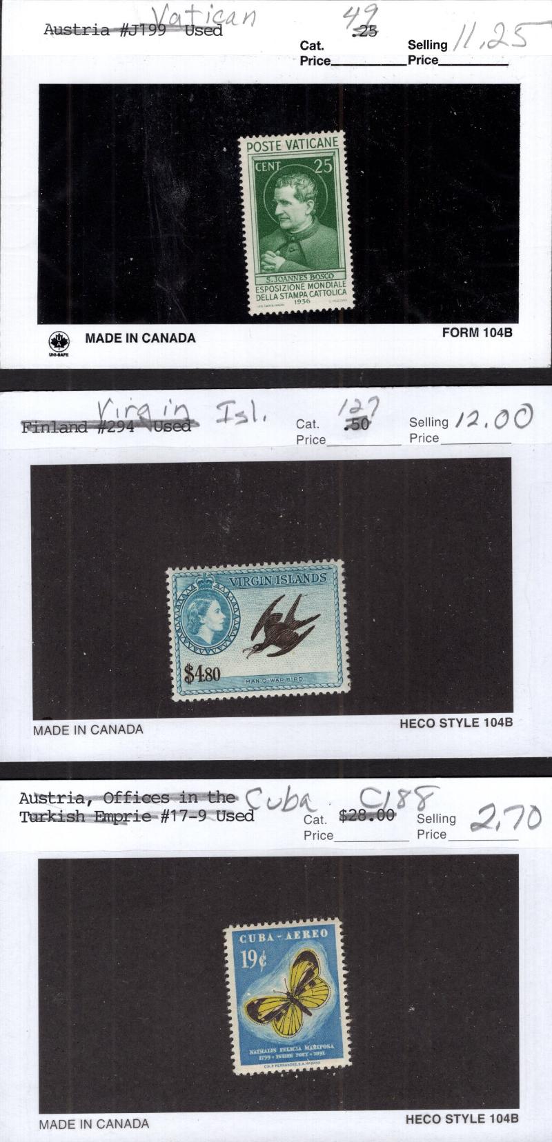 1534 image Unused Accum (100s) mainly 20th Cent few dup on Scott IDed 104 cards incl Bahawalpur #15, Canada 90, 120, 201, 261-62, 302, O10, Cuba C187-88, France 99, C13, GB MH175-76, Greece 584, Iceland 305, Monaco 230, 249, San Marino E1, Virgin Is 126-27 & others, gen F-VF H (Image) (imageb) (imagec) (imaged) (All Images)