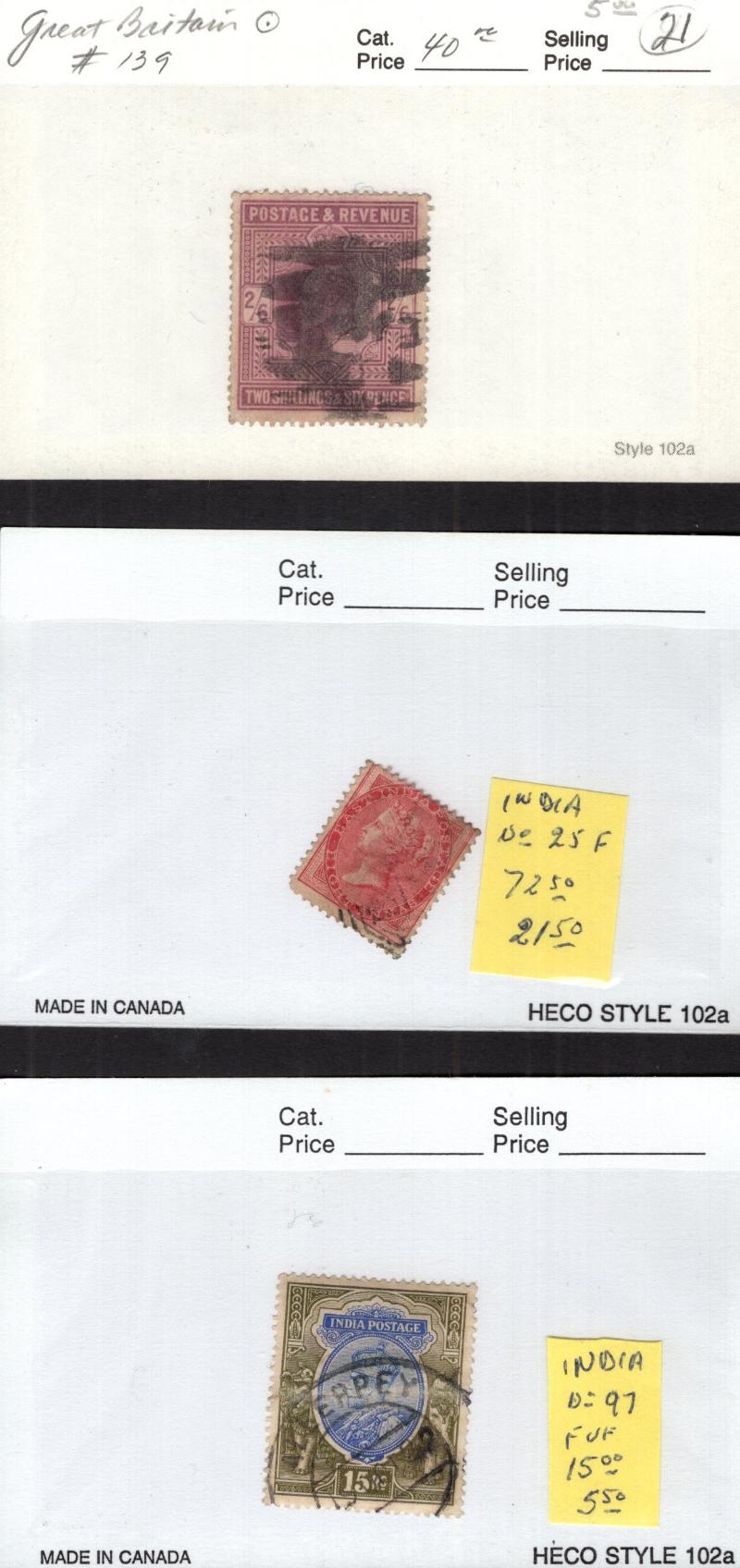 84, 95, 101-02, 159-60, China 11,13, 132, France 9, 20, 37, 96, 254A, GB 1, 27, 28, 40, 52, 57, 69, 70, 85, 95, 96, 108, 173, 179-80, 222-24, O36, Hong Kong 178-79, Italy 37-44, 58-63, 64-66, 409, 495-506, 540, C127-28, J21, J23, Q3-5, Lux 277,