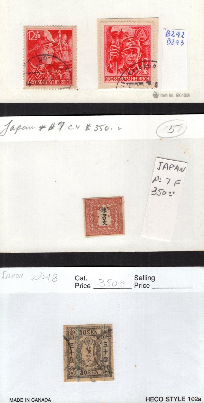 Monaco 4, 6, 7, Neth 1, 9, 10, 20, 53, Nfld 38-40, 59 & Unused: Canada 56, 57, Eritrea 5, 22, 25, 27, 42, 43, C1-6, GB 119, 120, 126, 139, Italy 33, 121-22, 124-25, 165-66, Japan 422, C4-7, Liech C9-12, Macao 47-49, 68-71, Cyprus 168-82, Thailand 1,