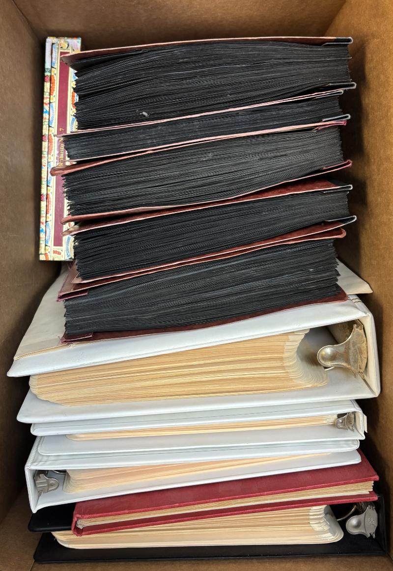 Accum many, many (1000s) */O mainly 20th Cent packed into abt (8500) IDed 102 cards & loose, incl sgls, sets & short sets; many diff countries; most CV 25¢-$5; some light to moderate dup; owner's CV $10,000 (NV); few flts but gen F-VF H/NH (Image) (imageb)