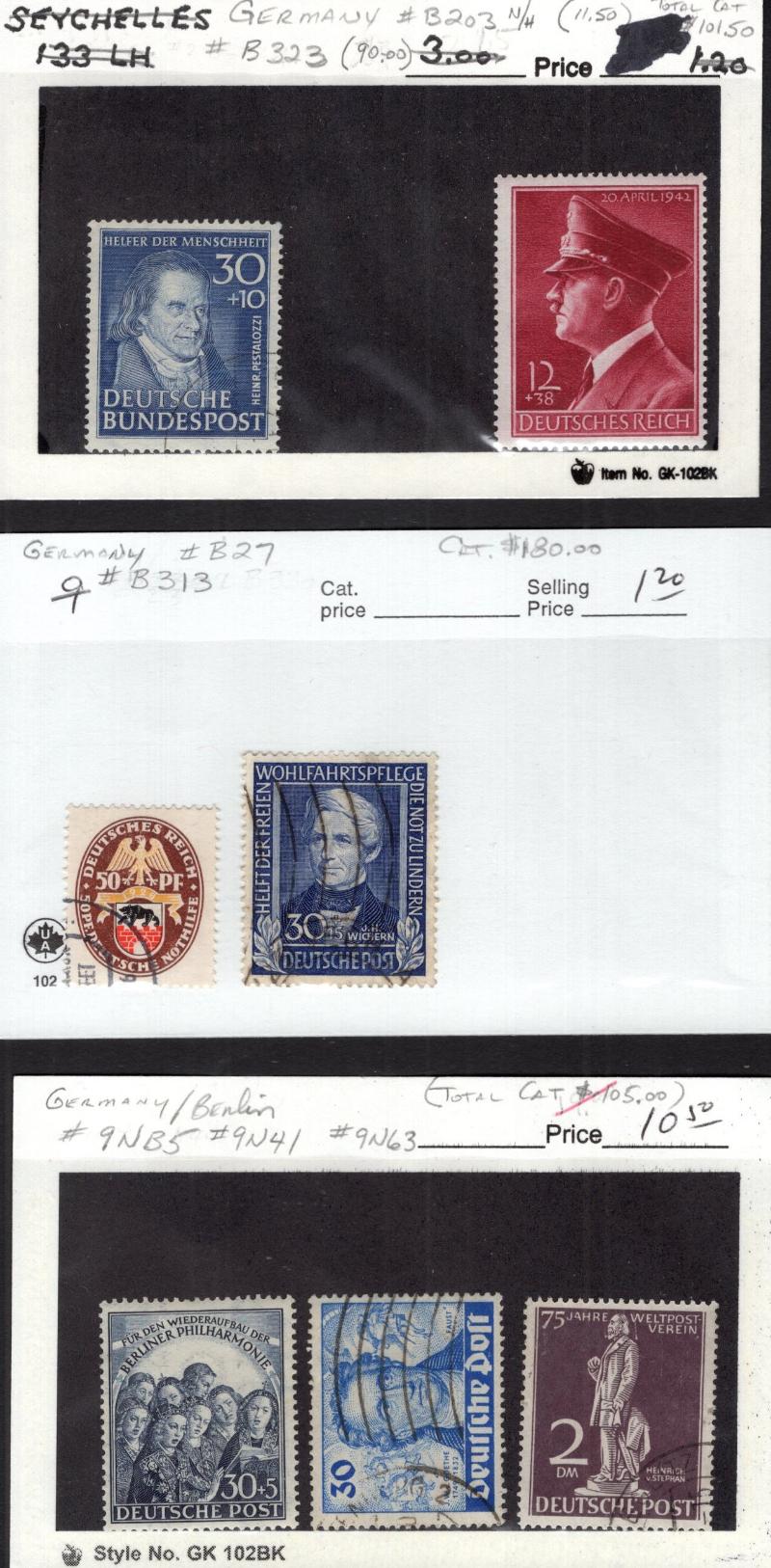 70, 80, 1L14-17, Germany 686, Br Honduras 13-15 NG, Br Guiana 79, 94, 217-18, 244-45, Iceland 209-11, 284-86, C3 & Used: C2, 284-86, Switz B2-3, B6, C13-15, C16-18, Germany B313, B323, C55, 9N63, 9N94-98, 9NB3, GDR 82, 84, Ireland 117, 150, 162 &