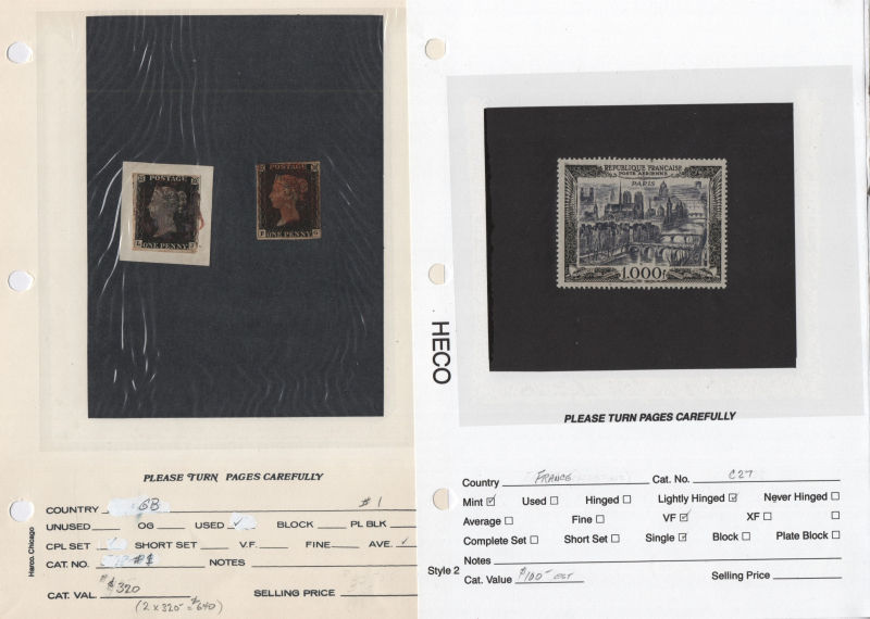 for parallel unused/used, shades or other varieties, Cinderellas, unlisted items & some cut squares, revenues & more; there are (2) Penny Blacks, one appears unused but is quite damaged; owner has reported a total of (35,800) items w/ a 30-year old