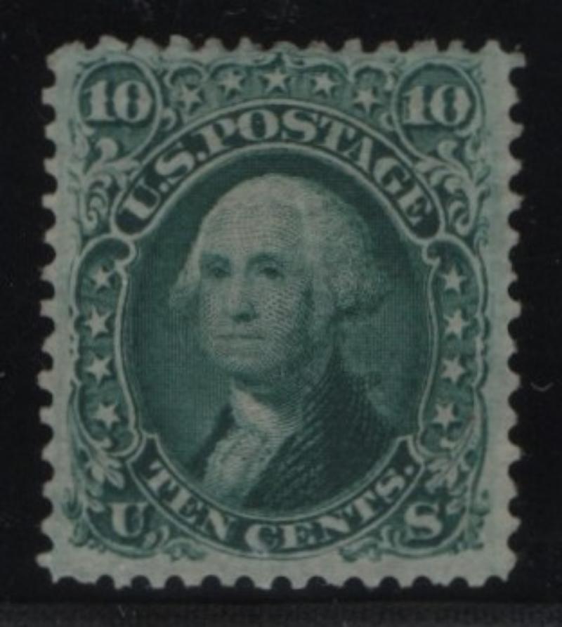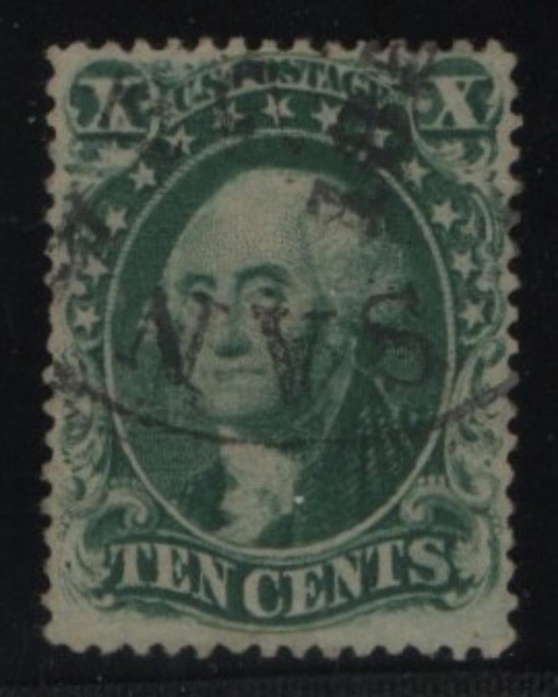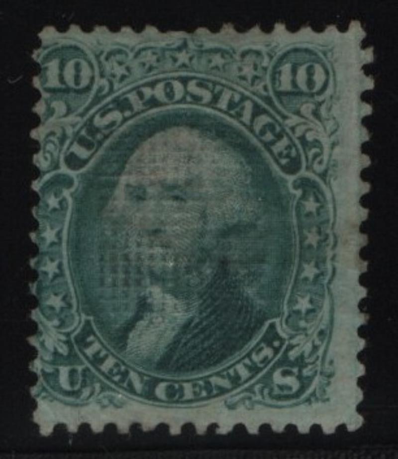 VF-XF 10¢ green Type IV, San (Francisco) cds, 1989 PF Cert, pos. 64L1 - the only position on the plate recut at top & bottom (Image)