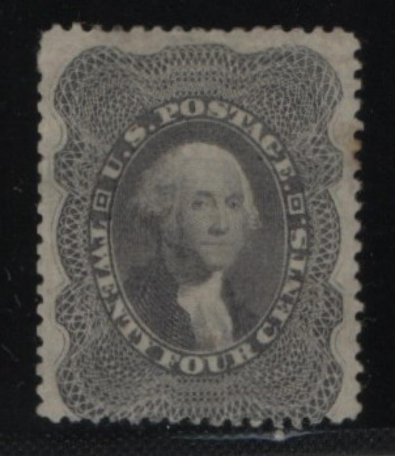 H, 24¢ gray, reperf at left, (3) large margins to in at bottom (Image)