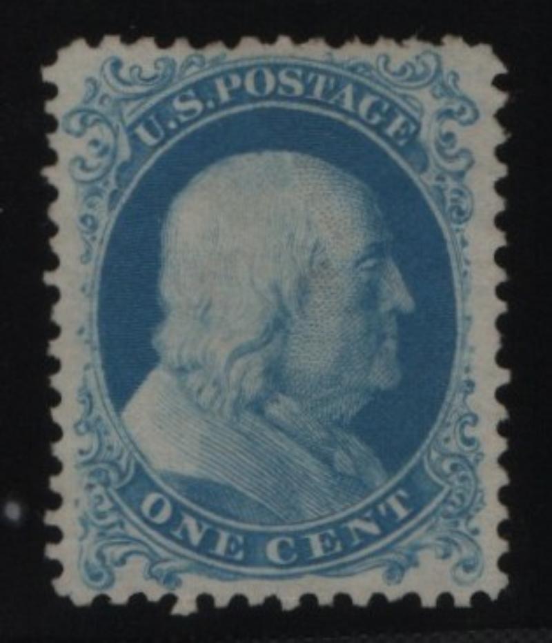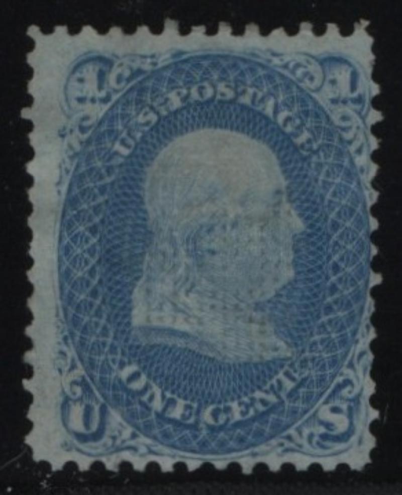 1¢ blue Franklin w/ "F" grill, appears unused, bright color (Image)