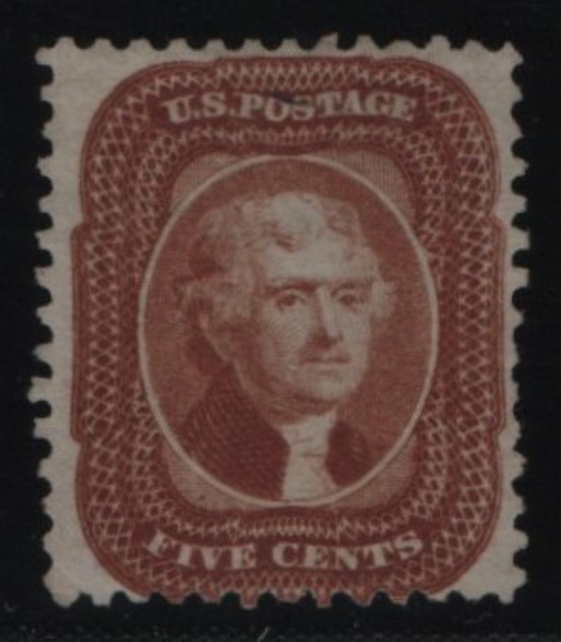 NGAI, 5¢ orange brown Jefferson, perf 12 1875 reprint, "corner perf creases" in bottom corners per 2008 PSE Cert (Image)