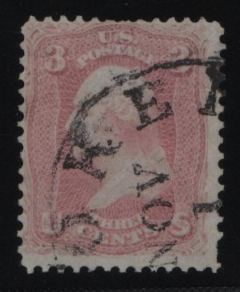 F-VF 3¢ pink, (3) short perfs at top, Hoboken NJ cds, copy of 1996 PF Cert (for pair), 2012 PSAG Cert (Image)