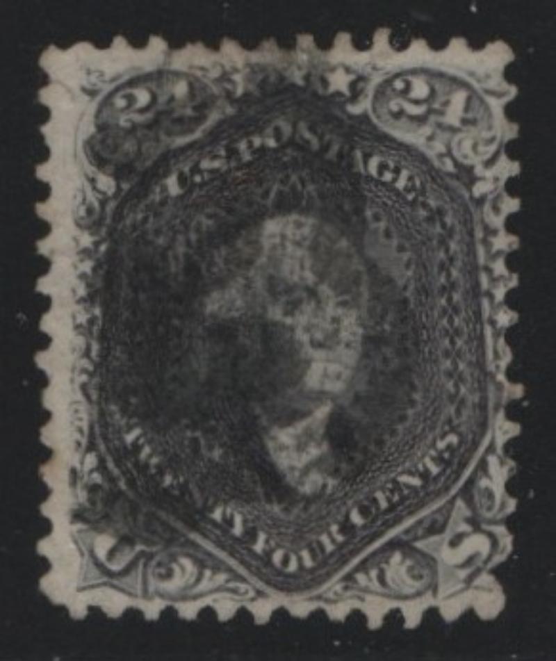 VG-F 24¢ blackish violet, 2025 PF Cert "genuine w/ thins and small nick at bottom right" (Image)