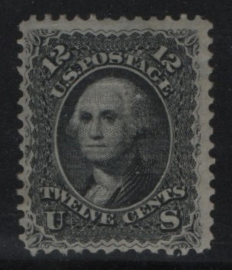 F-VF+ H, 12¢ black w/ "E" grill, "part disturbed OG & small tear at left center" per 1995 PF Cert (Image)