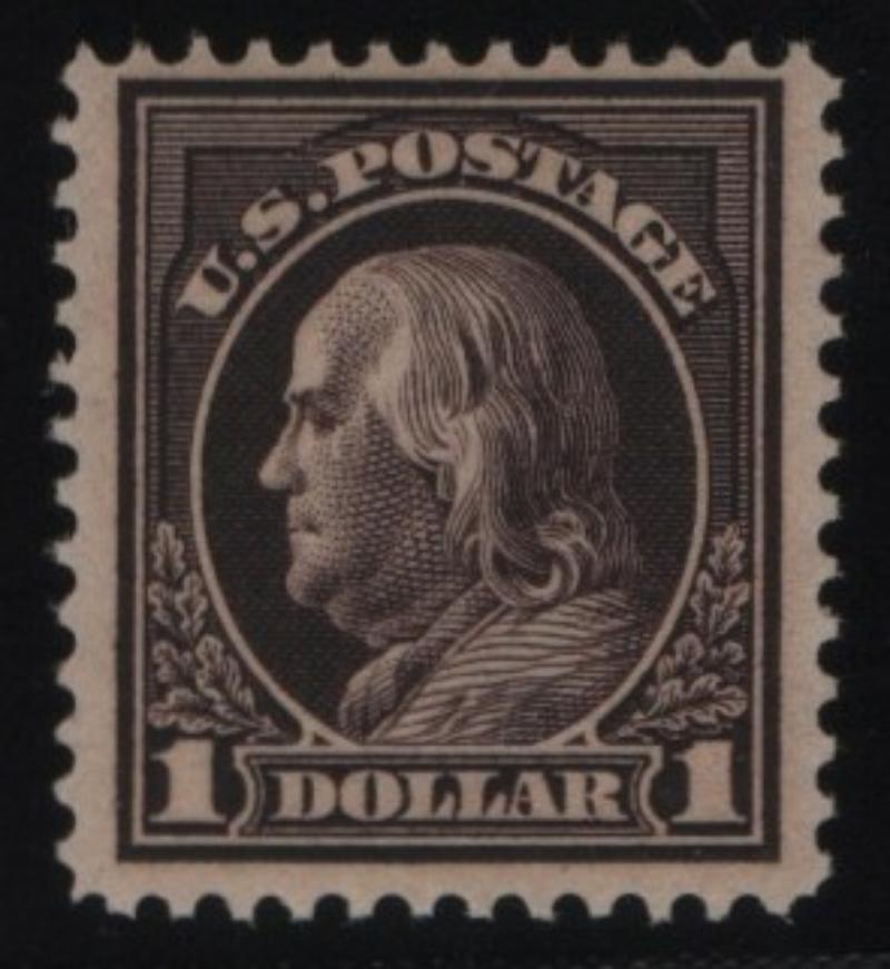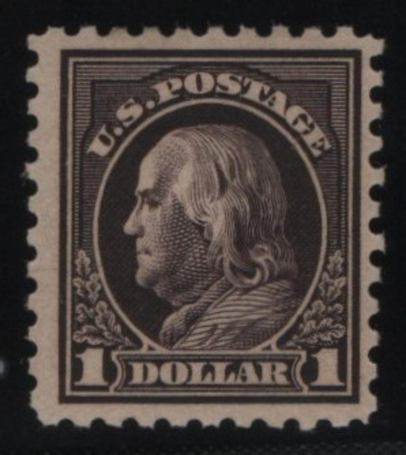 F-VF+ LH, $1 violet brown Franklin (Image)