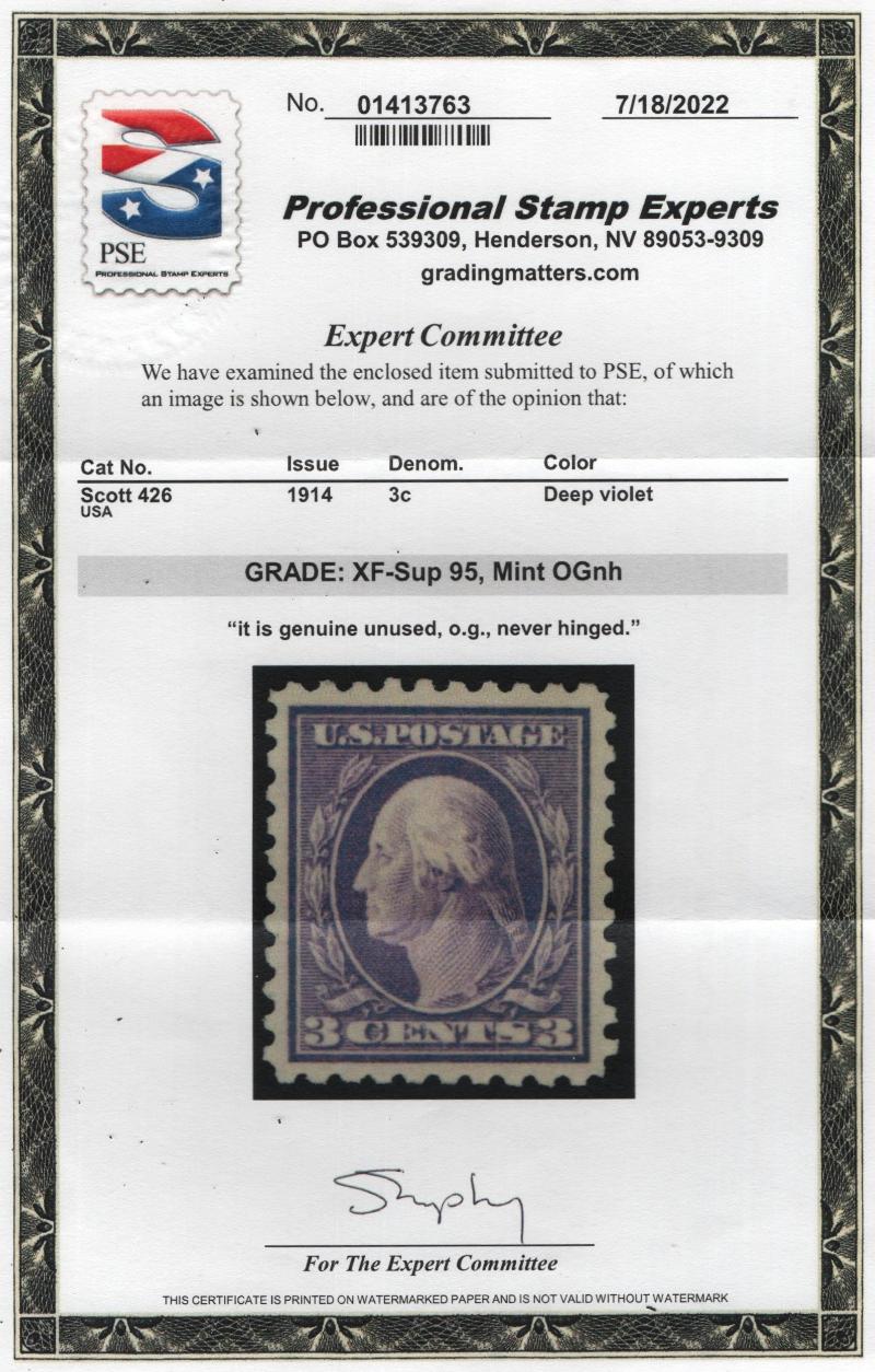 XF-SUP NH, Washington 3¢ deep violet, 2022 PSE Graded XF-Sup 95 (CV is SMQ) (Image) (imageb)