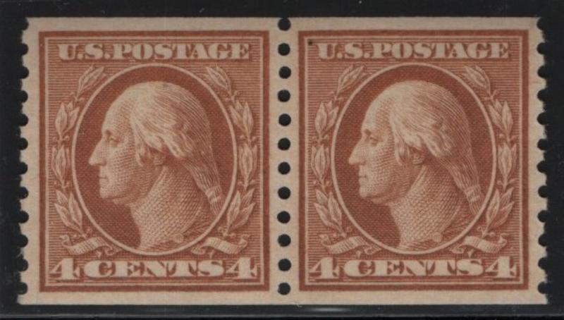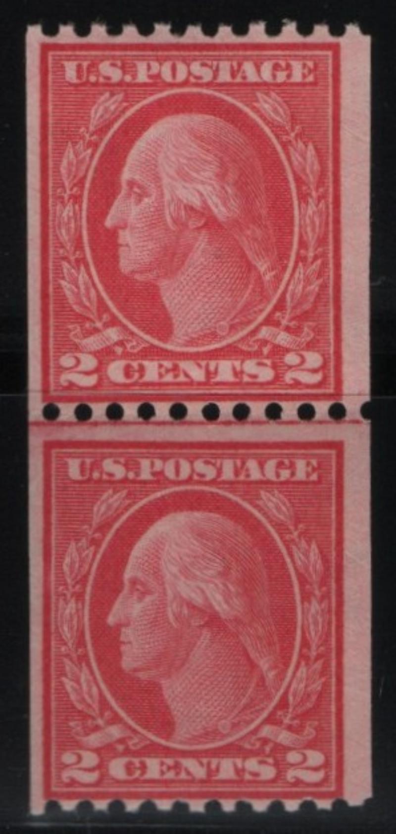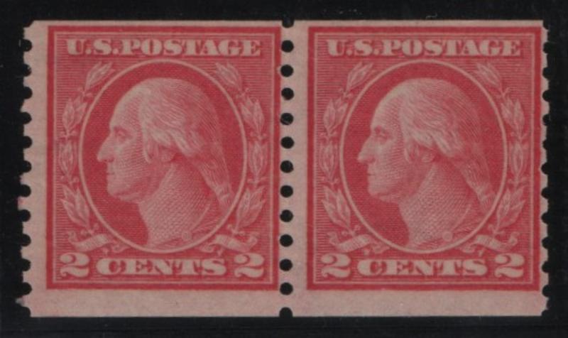F-VF Coil pair 1915 Washington 2¢ red, Type II, "Crowe Cert", Rotary Press, Perf 10 Vertically, single line watermark (Image)
