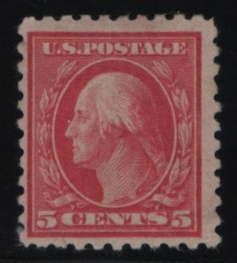 F-VF H, 5¢ rose ERROR, perf 11 (Image)