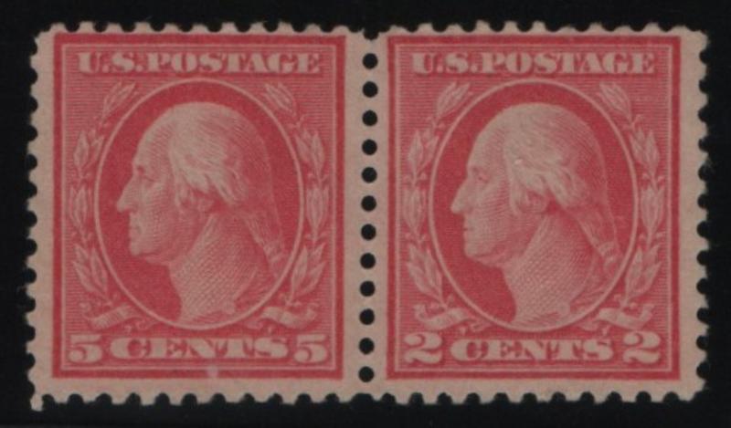 499 * F-VF H, Pair, 5¢ rose ERROR & 2¢ rose (Image)