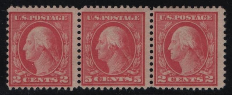 499 (2) * F-VF H, Strip/3 w/ #505 rose ERROR in middle (Image)