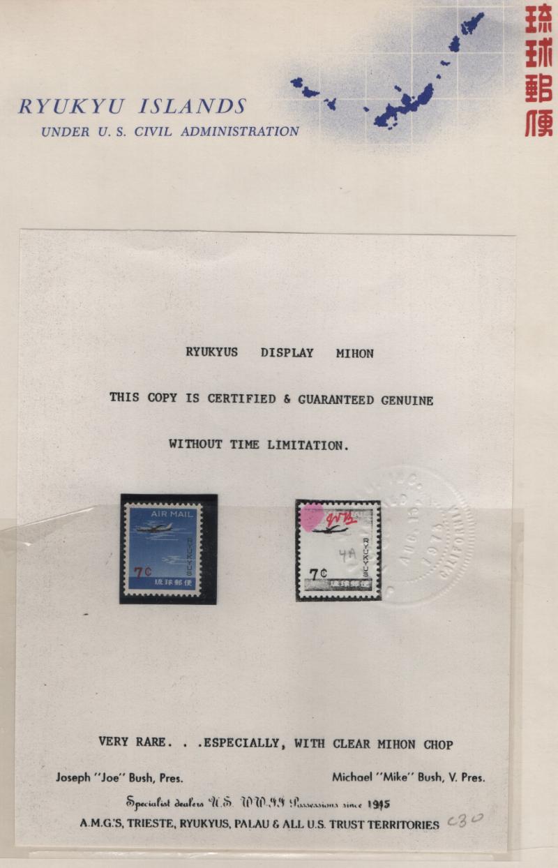 Display Mihon C30 Plane 7¢, OG LH sound, light chop UL, on Bush Cert, only (17) known SCARCE (Image)