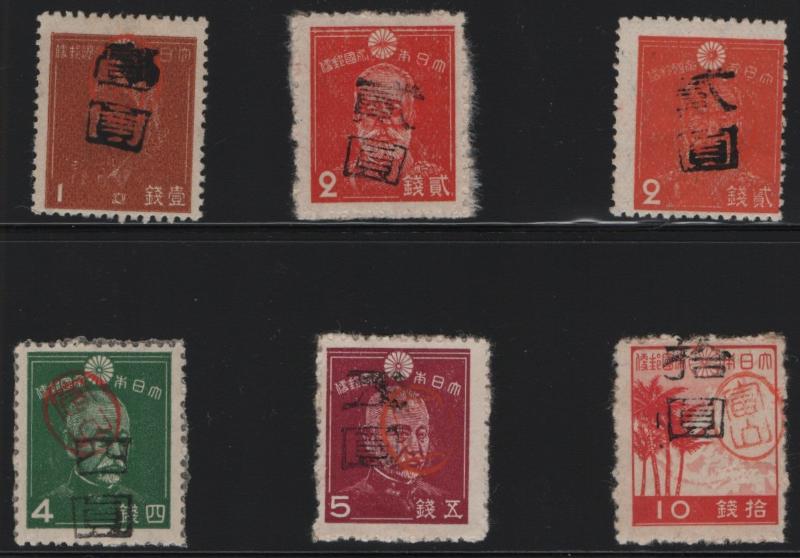 Provisional Surcharges: 3X25, 3X28, 3X28a, 3X29-31; full OG 3X25 & 3X28a (VLH), others w/ paper backing; all signed Bush; F and better (Image)