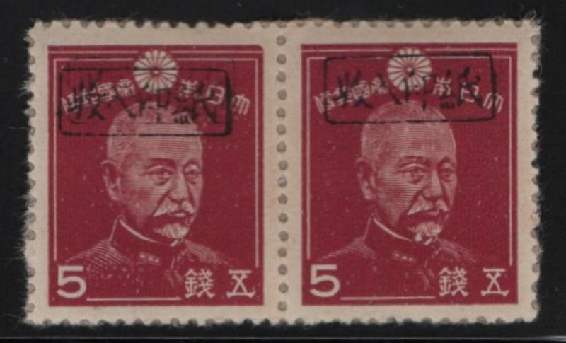 Miyako Provisional Revenue, 5s brown lake, Hz pair, L stamp w/ double ovpt, full backing paper, VF; listed but not valued in Scott (Image)