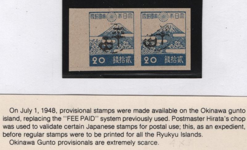Okinawa Provisional 20s ultra, NGAI, black seal, imperf L margin Hz pair (pos. 61-62), VF (Image)