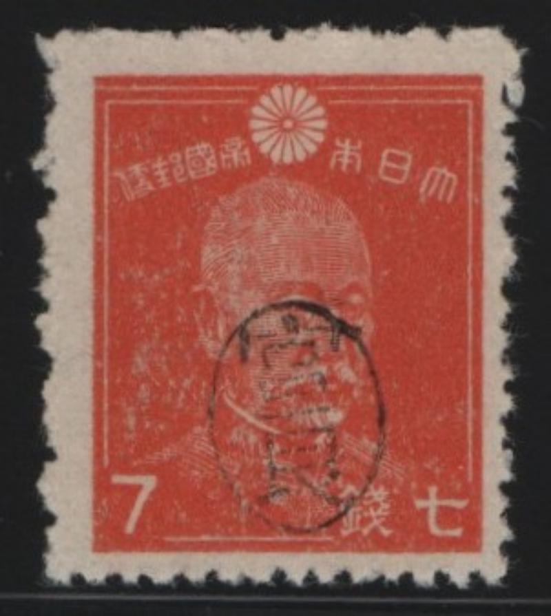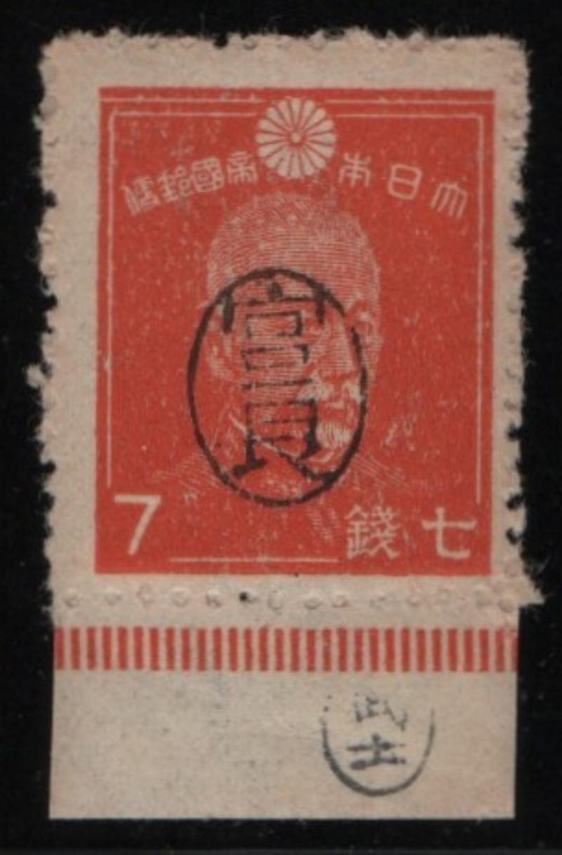 Yaeyama Provisional 7s orange vermilion, OG w/ traces of backing paper, bottom selvage w/ small black chop, F-VF (Image)