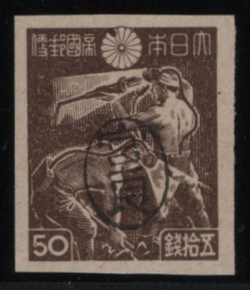 Yaeyama Provisional 50s dark brown, imperf NGAI, VF (Image)