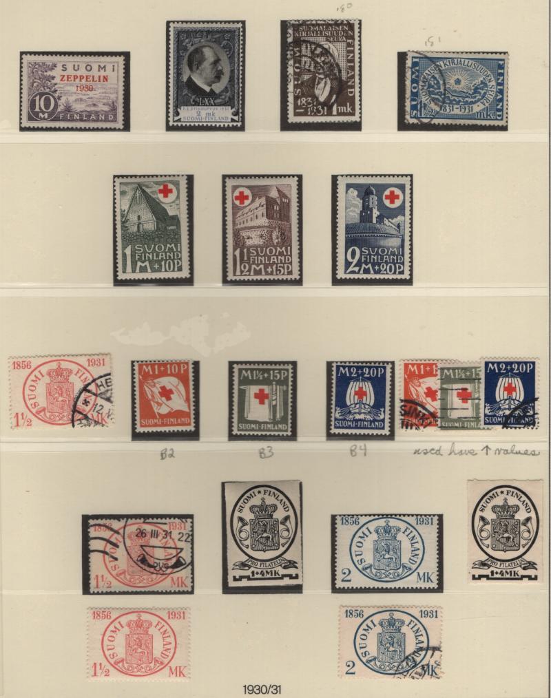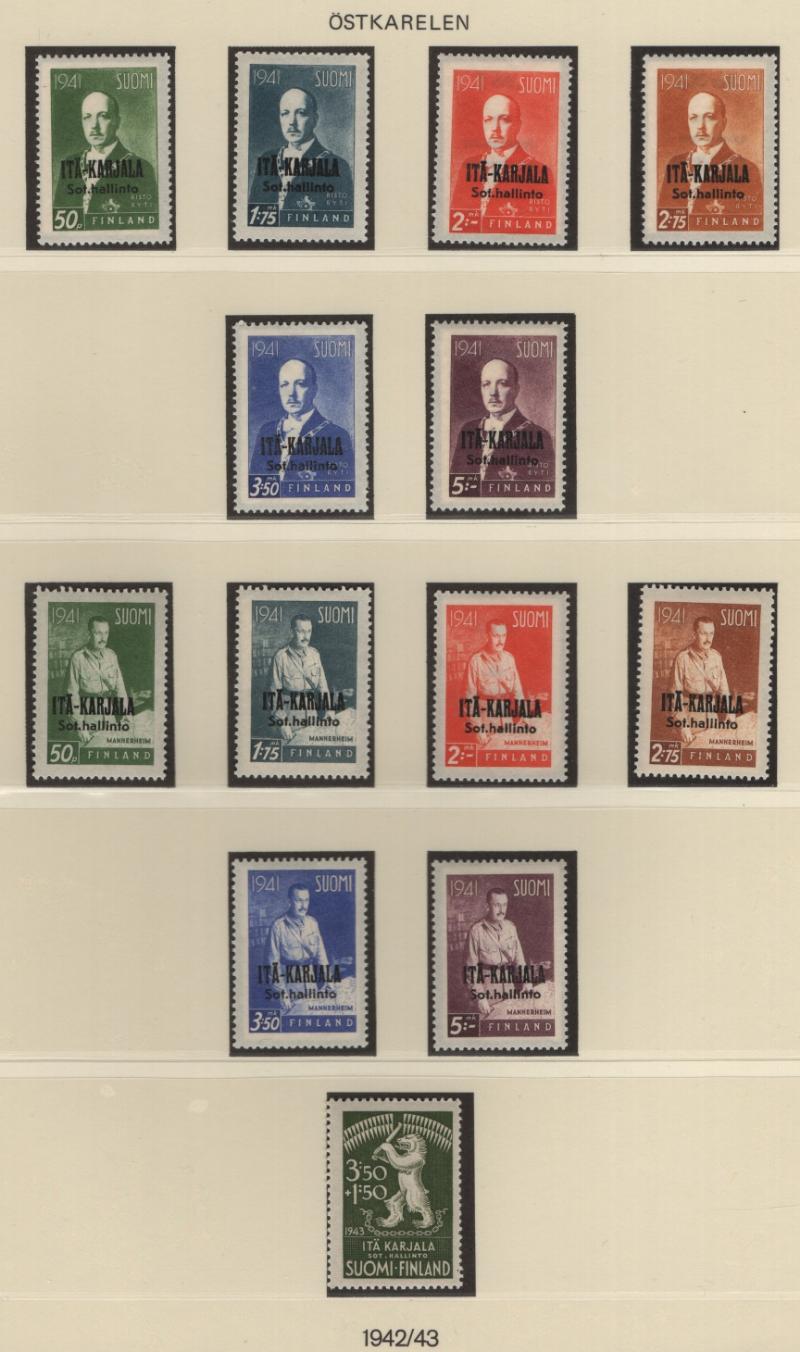 / 38-45 used; 52-56 unused, 127-40 unused, 153-54 NH, B2-4 used; 1943-62 virtually complete, majority unused; C1 probable regum, C4 NH, East Karelia complete unused, more; 2nd vol is 1963-81 abt 50% complete, mostly postally used w/ some unused **/*