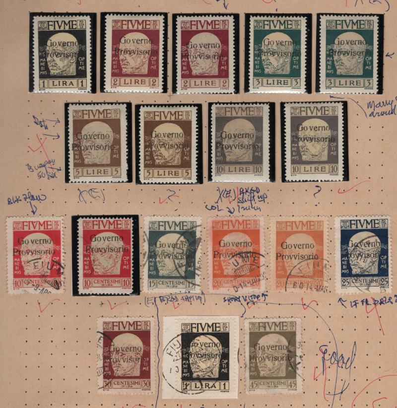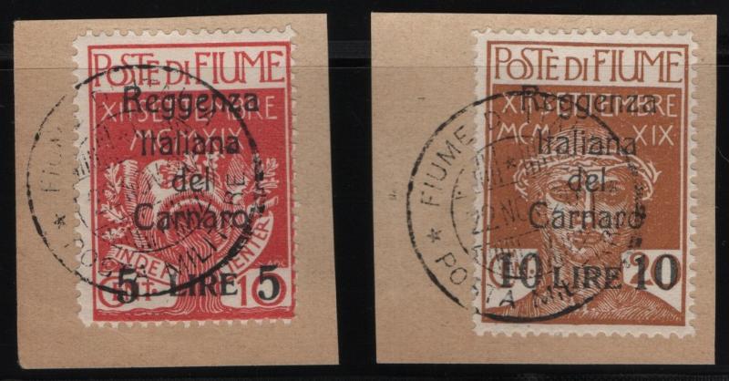 121 VF+ High CV & high values of set of 1920, Ovpt, for the Fiume Legionnaires of d'Annunzio occupied the islands of Arbe & Veglia in the Gulf of Carnaro, used on piece