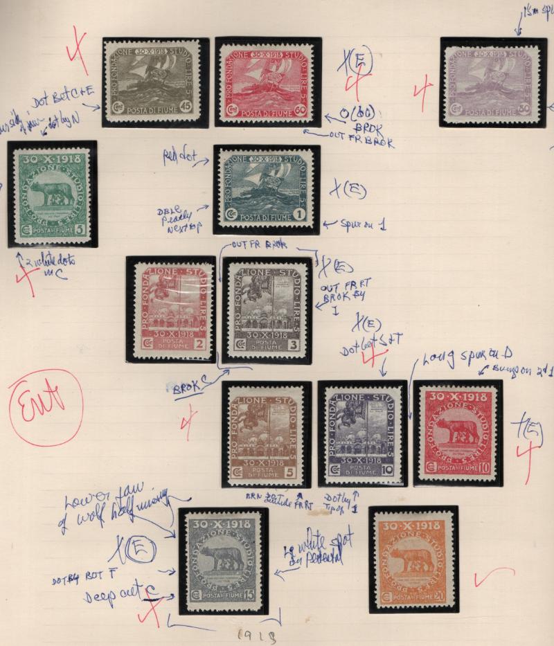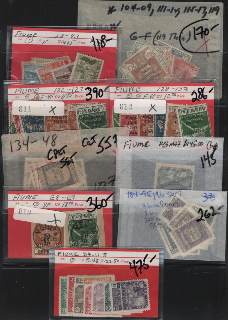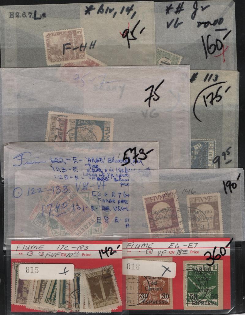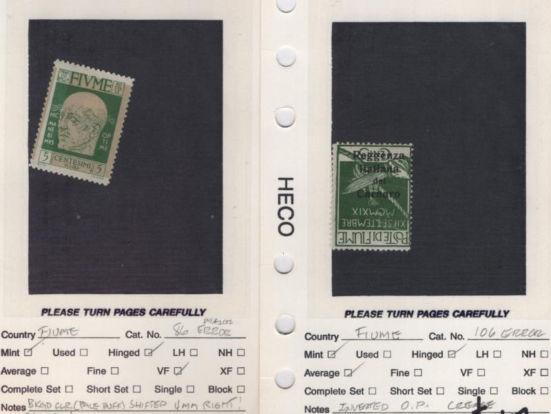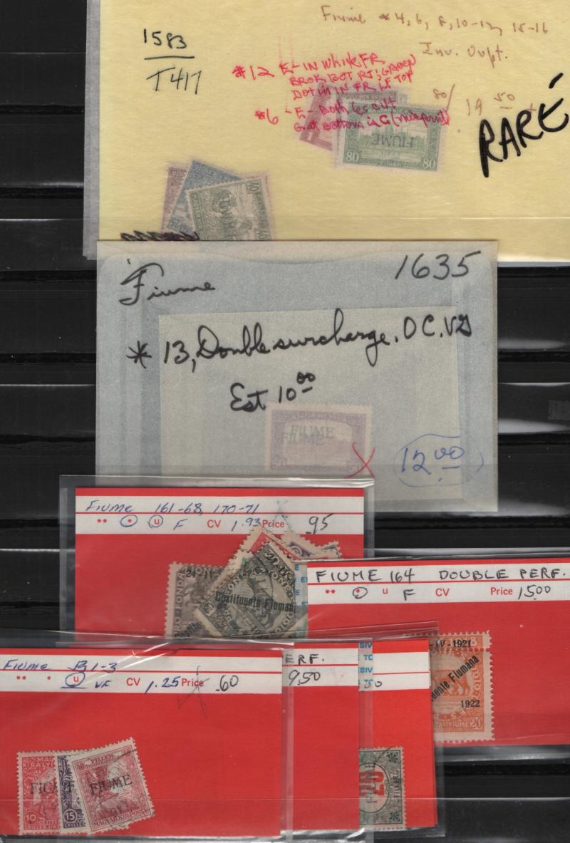 other varieties, unusual group w/ many seldom seen in collections from Fiume incl unused #4, 6, 8, 10-12, 15-16 all w/ inverted Ovpt, 13 double Ovpt, 16 double perfs, 86 color shift, 101-2, 106 invert Ovpt, 114 imperf between, 149-59, J1-12, used #10