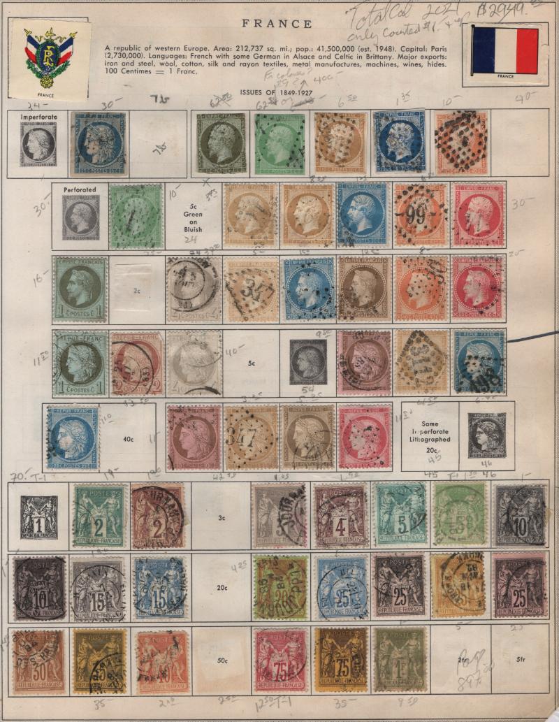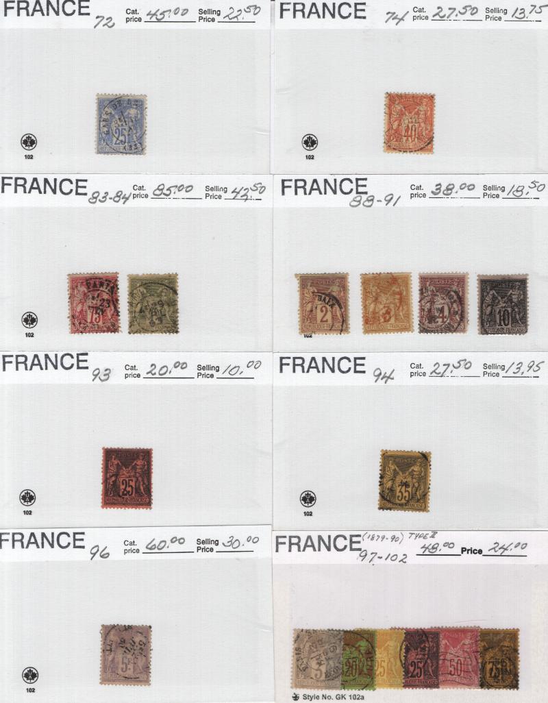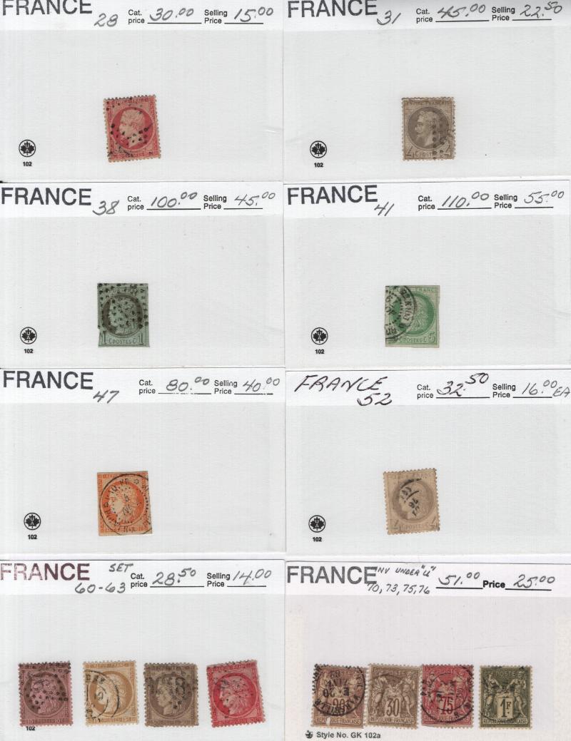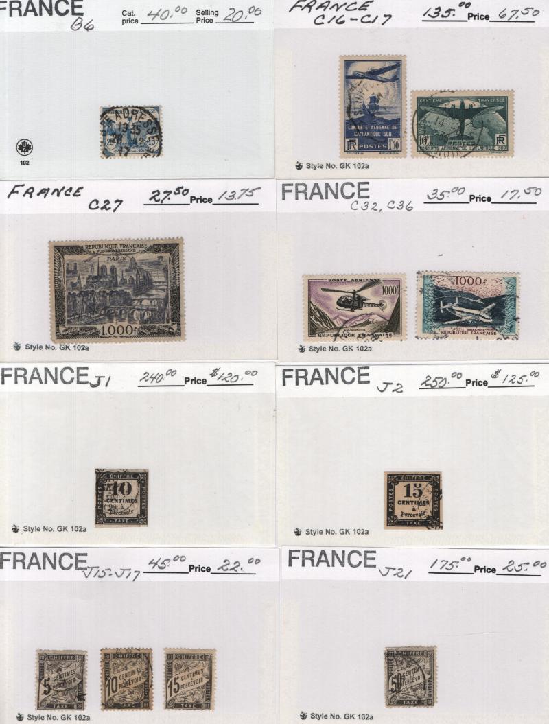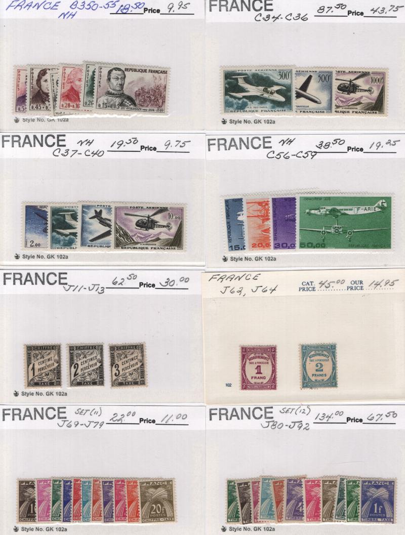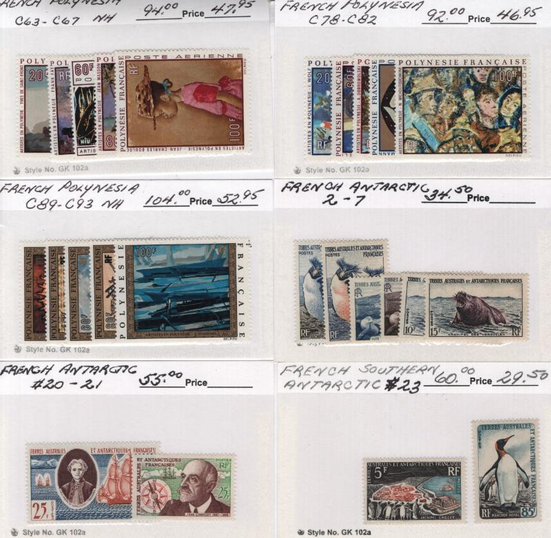abt (50+) mainly unused 20th Cent in abt (30) IDed 102 cards incl Unused: French Colonies J23//34, Fr Andorra #124//42, Fr Polynesia 233-40, C21, C24-27, C34-36, C48, C54, C63-67, C78-82, C89-93, FSAT 2-7 (2), 20-21, C1-2, C4, C11, C20, C22 & more;