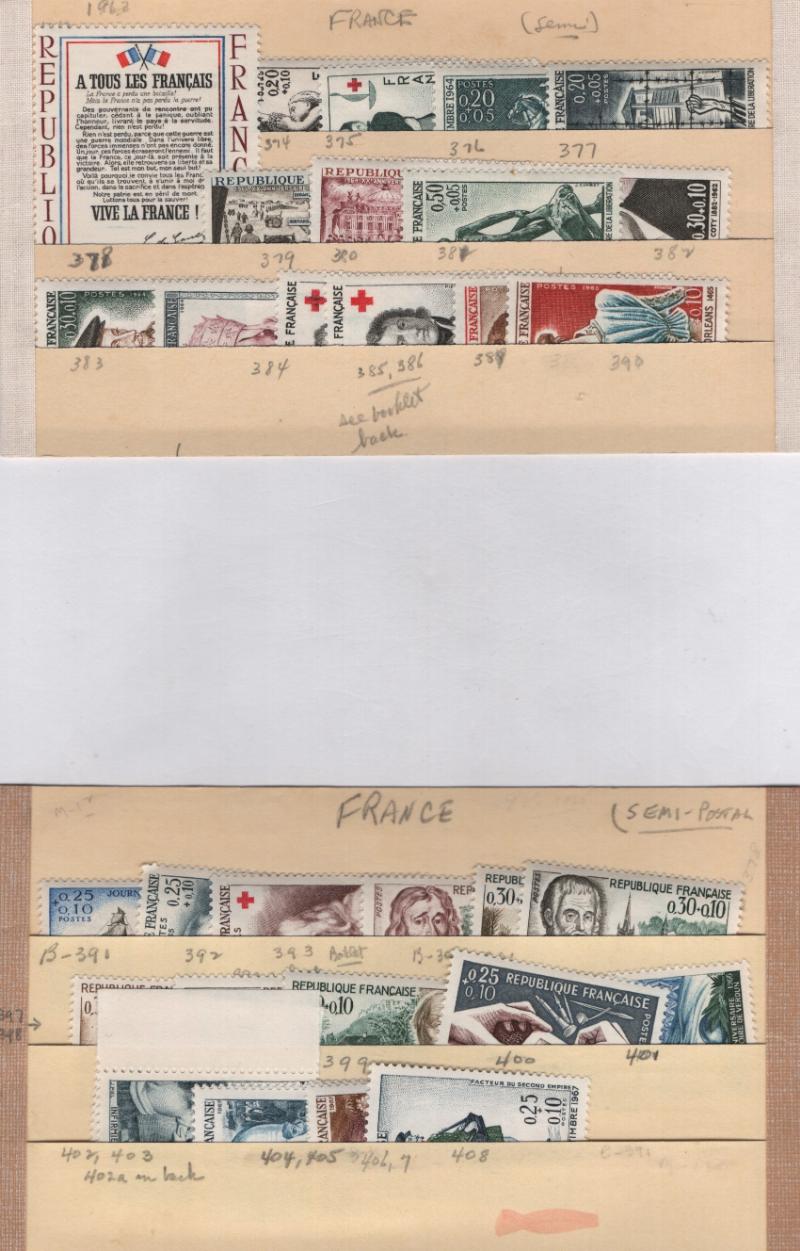 abt (1000+) mainly unused 1960s-90s #938//2654 incl semi-postals, on abt (90+) well filled IDed manila dealer stock cards, incl mainly sgls, sets & short sets; gen F-VF H/NH