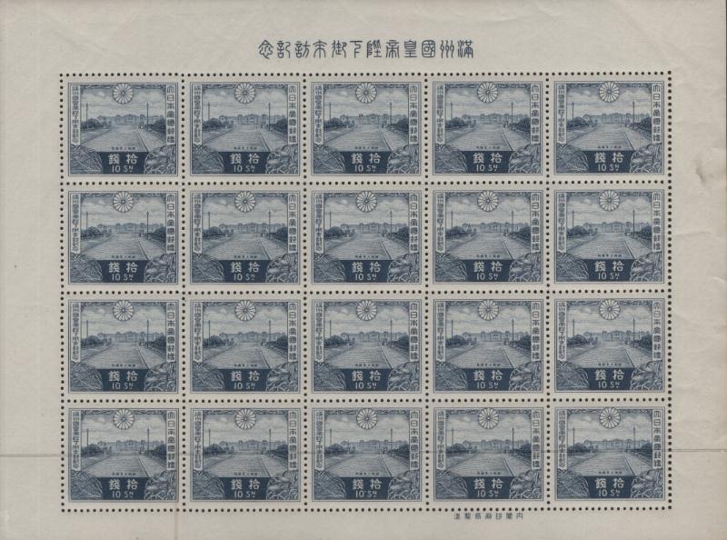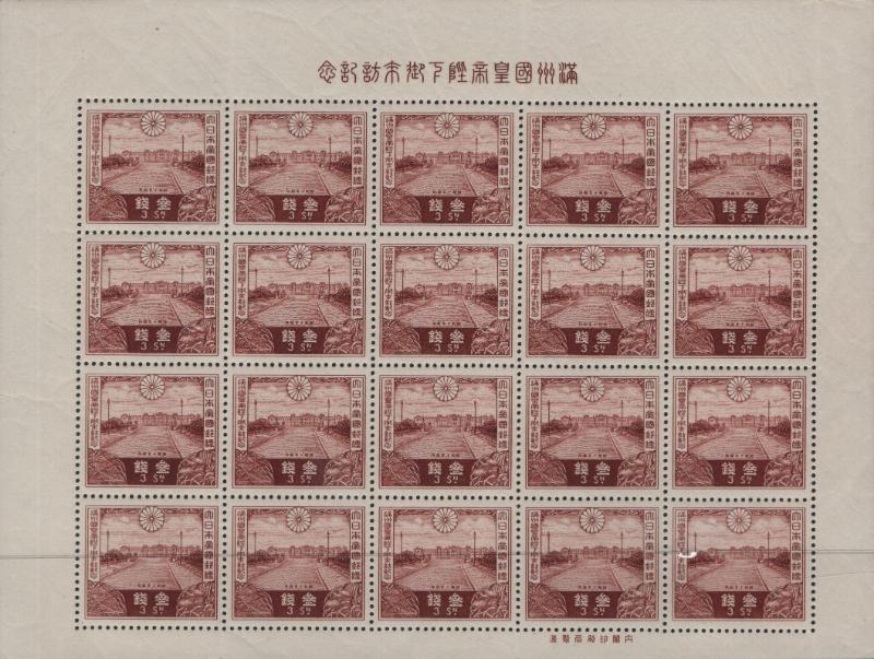218-221 VF NH, 1935 Pu Yi's Visit to Tokyo, Sheets of (20) (Image) (imageb)