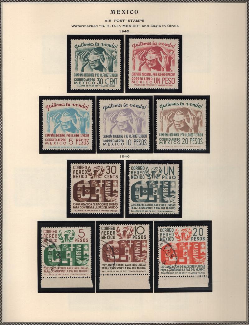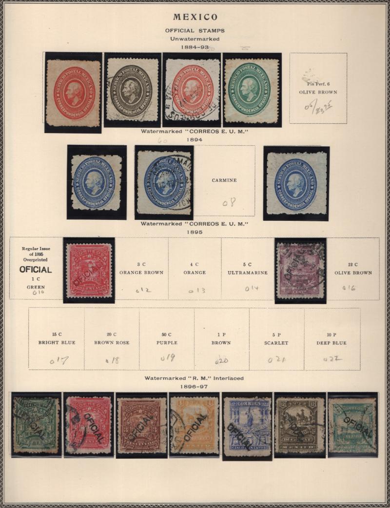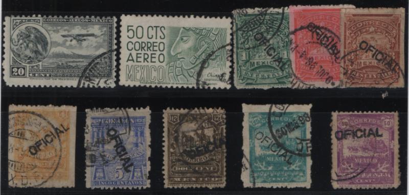 Used BOB high values group incl C62a slate color, C212 perf 10 1/2 x 10 "MEX" wmk, O23-29A, 1896-97 Officials set w/ some rough or toned perfs, others F-VF (Image)