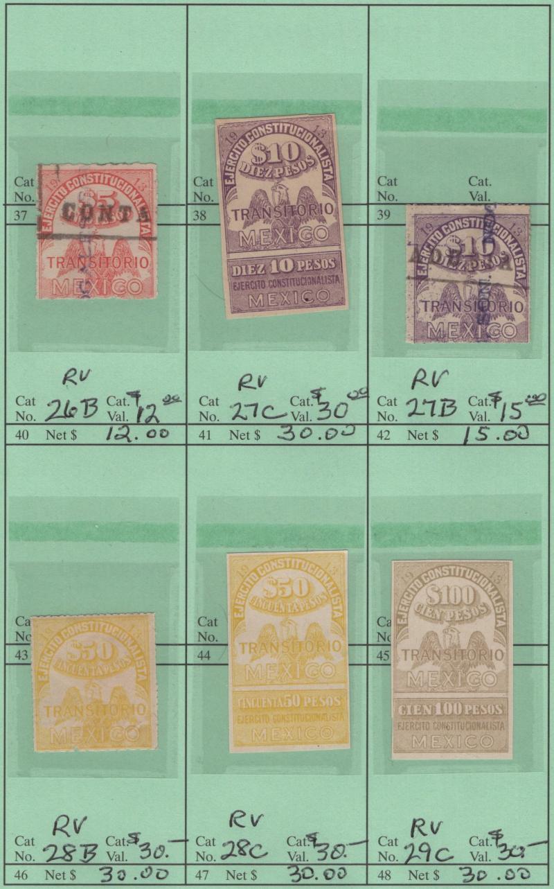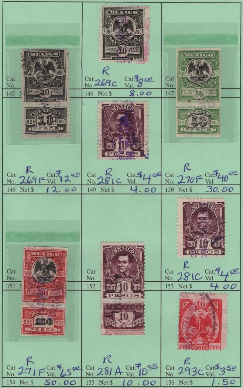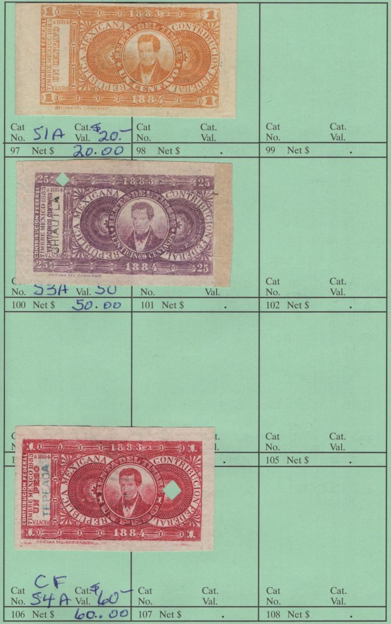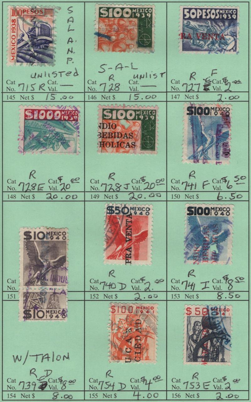 REVENUES Stock Mexican revenues 1870s-1970s filling (10) APS circuit books, all IDed by MEPSI numbers, wide variety of Federal & State revenues, ms & hs cancels, a few unused, w/ coupons / talons, some light dup; bonus (4) full sheets, folded; huge