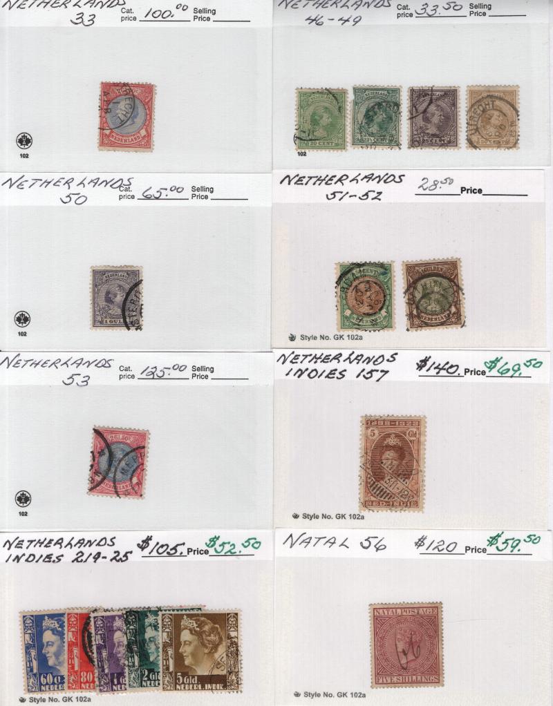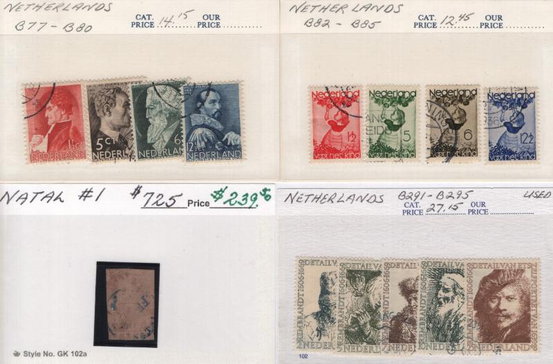 46-49, 50, 51-52, 53 (2), B77-80, B82-85, B291-95, Dutch Indies 157, 219-25 & Used: Natal 1, 56, much more; some light dup; owner's CV $2,730 (NV); few flts but gen F-VF H/NH