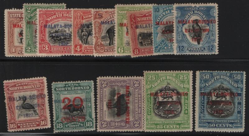 136A-153C VF H, 1c to 50c Malaya-Borneo Exhibition Ovpts (Image)