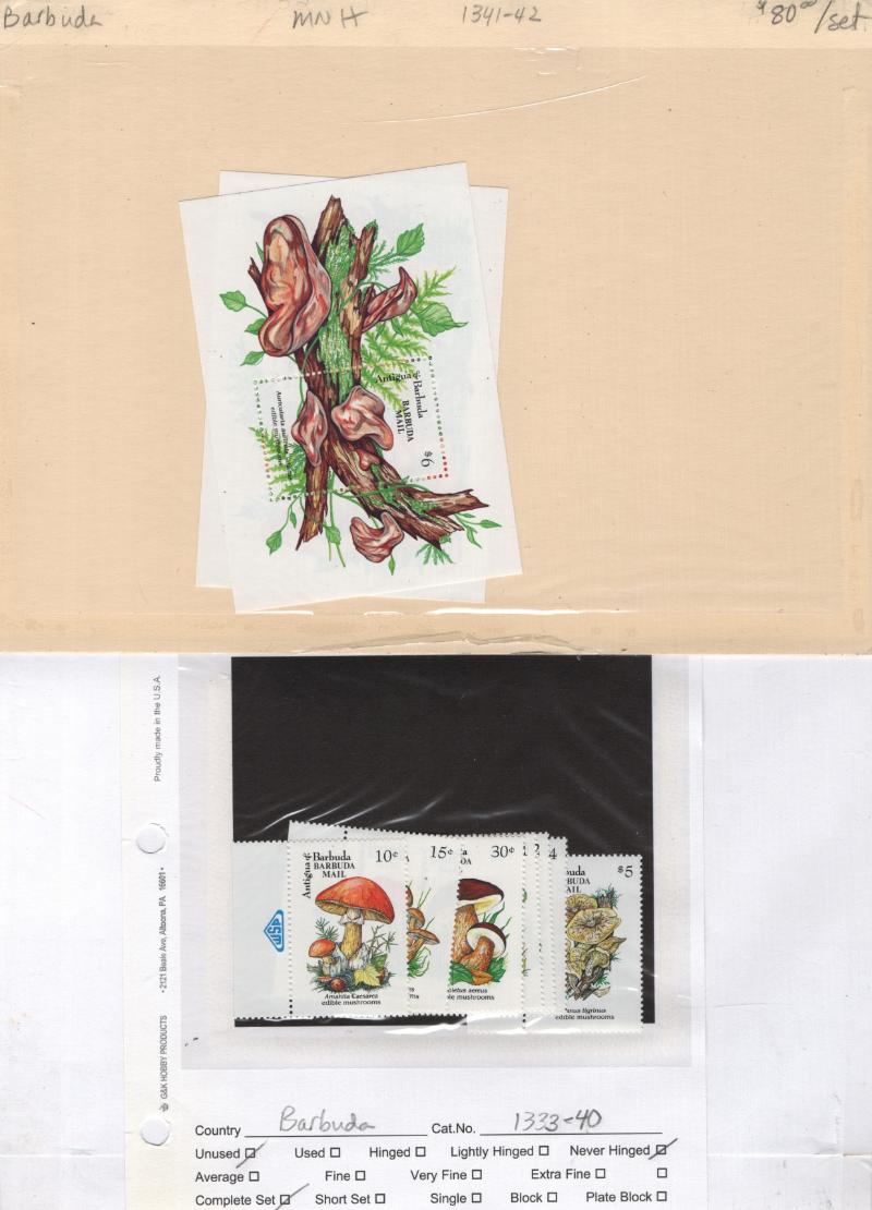 1409 image FUNGI Dealer Stock neatly organized in (5) 6x9 counter books, Albania to Zambia, sgls, full sets, se-tenants & S/S, ea labeled by Scott# & recent CV, from $1.50 to $70 but mostly $5-20 range; very minor dup, noted Bhutan #154-54e 3-D set ($33), Barbuda 1333-42 ($140), Madagascar 1001C-J, Micronesia 1034-37, PNG 873 booklet; plenty of "topical" countries but also regulars like Andorra, Canada, Macedonia, etc; a few used sprinkled in but most are likely NH VF ex-Stamp Smith (Image) (imageb) (imagec) (imaged) (imagee) (imagef) (imageg) (All Images)