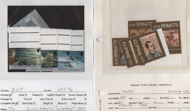 1416 image MAPS Dealer Stock organized in (3) 6x9 counter books, Alderney to Zambia, full sets, se-tenants & S/S, ea labeled by Scott# & recent CV, from $1 to $30 but mostly $5-15 range; occasional dup, noted Canada 977 (4), China 1171-73, Comoros C65, Falklands 1081-84, Fr Polynesia 677, Hong Kong 427-30, Korea 384a, Philippines 2158-59, Tonga 489-92 ; fewer of the "topical" countries & more regulars incl Brit Commonwealth; most are likely NH VF ex-Stamp Smith (Image) (imageb) (imagec) (imaged) (imagee) (imagef) (All Images)