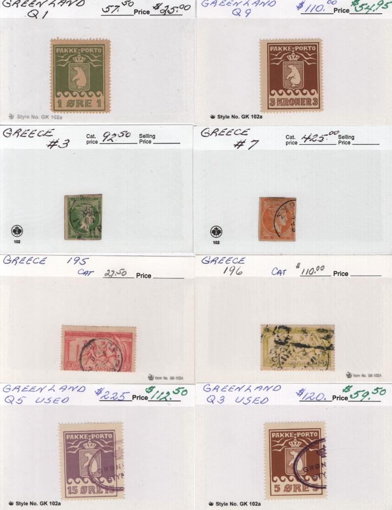 35-37, 48-58, 452-55, 434-37 (3), 452-55 (2), 463-64 (2), 497, Q1, Q9 & Used: Greece 3, 7, 195, 196, Greenland Q2, Q3, Q4b, Q5 & much more; some light dup; owner's CV $4,444 (NV); few flts but gen F-VF H/NH (Image) (imageb)