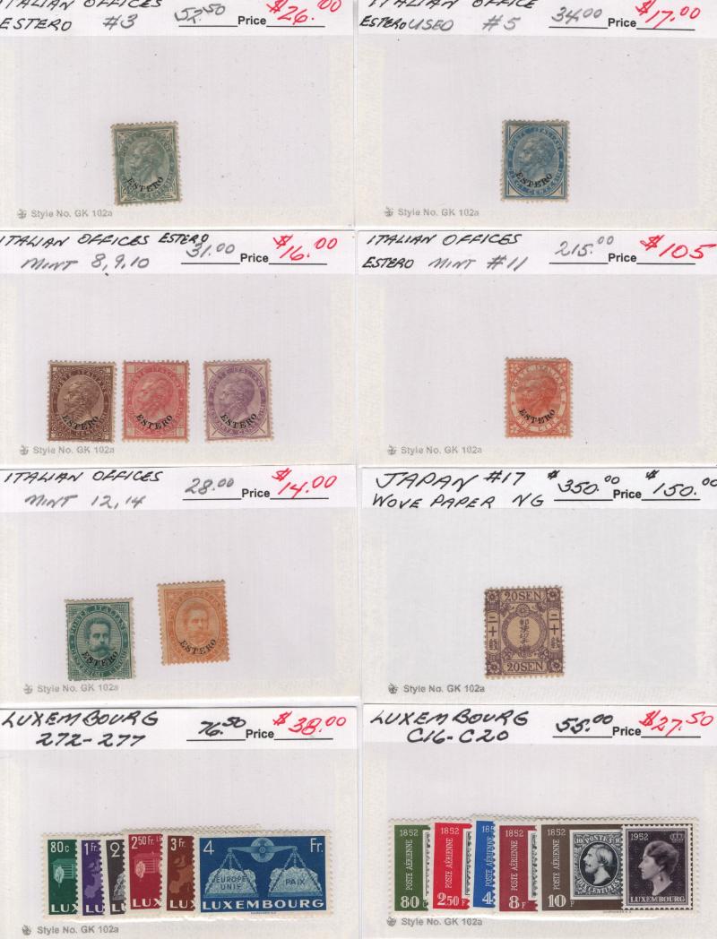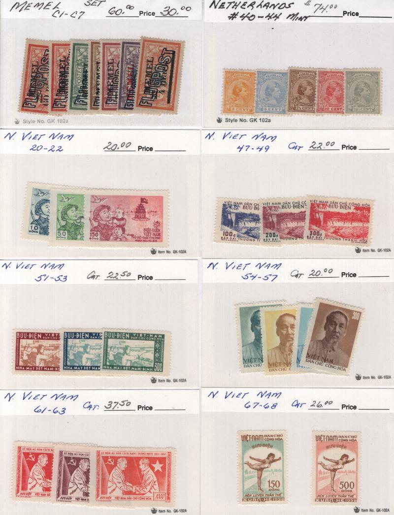 Offices-Estero 3, 5, 8-12, 14, Japan 17 NG, Lux 272-77, C16-20, Memel C1-7, Neth 40-44, N Vietnam 20-22 (2), 47-49 (3), 51-53 (3), 54-57 (3), 61-63 (3), 67-68, 72-75, O1-O4 (2), O10-14 (2), O17-20 (2), Switz C14, Vatican City 8-13, 41-42, 61-67,